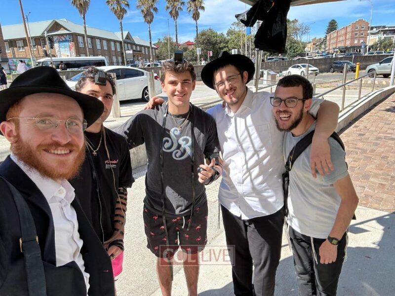 Their presence was immediately felt. Walking the streets of Bondi in hats and jackets, unmistakably Jewish, they were repeatedly stopped by Jews and non-Jews alike who shared that they had heard—through social media and word of mouth—that a group of American shluchim had arrived to offer support.