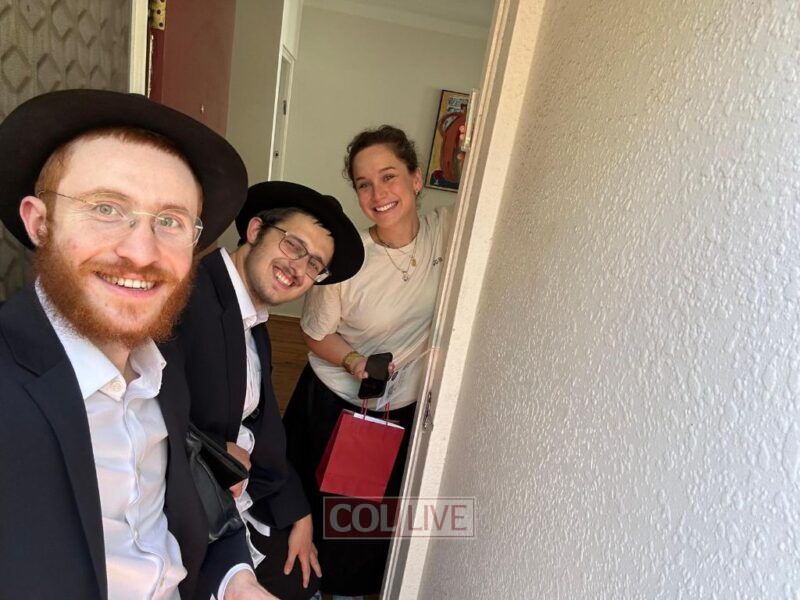 Zalmy Hirsch described meeting a woman who was “completely depressed” when they first arrived. By the end of their visit—after heartfelt conversation and the installation of a mezuzah on her door—she was laughing and crying with them, visibly uplifted.