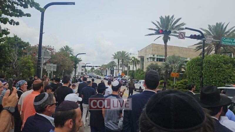 A large crowd lined the streets near the Shul of Bal Harbour as the Levaya passed by of its beloved founder and leader Rabbi Sholom Dovber Lipskar obm.