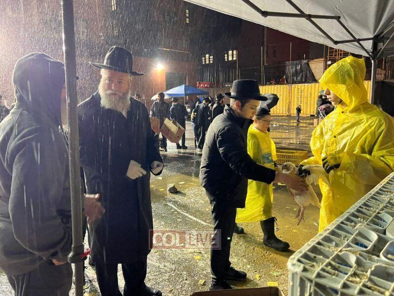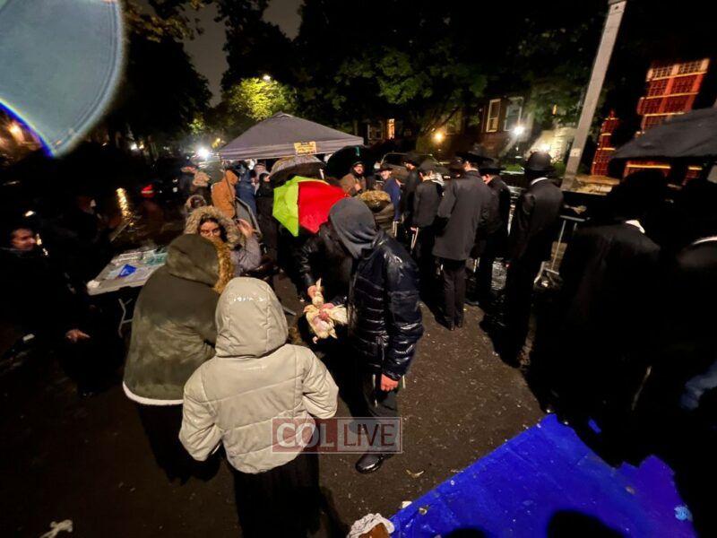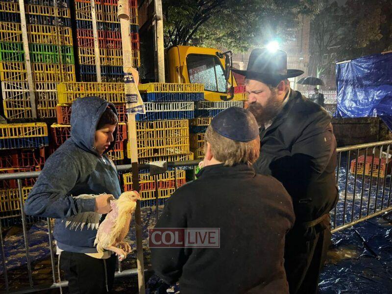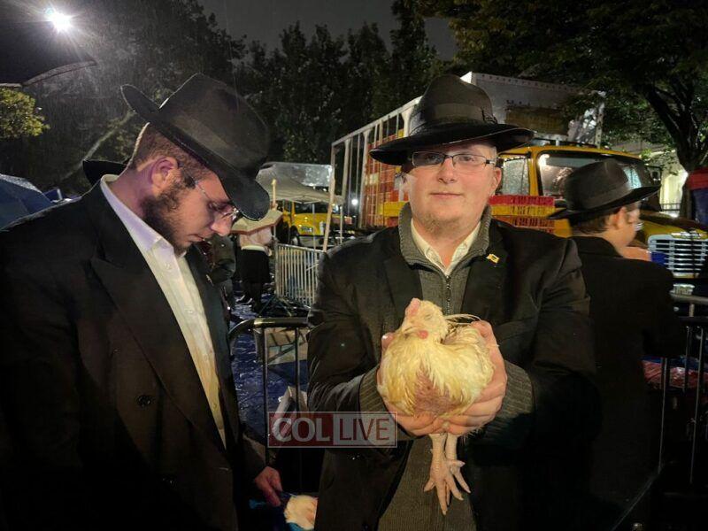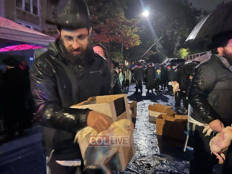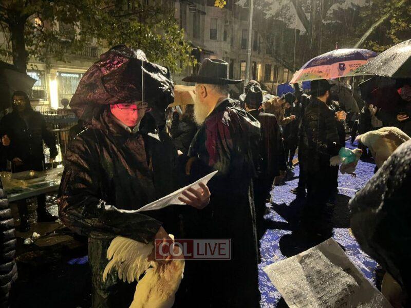 Hundreds braved the rain to perform the Kapparos custom in Crown Heights on Monday night, Erev Yom Kippur. Photos
