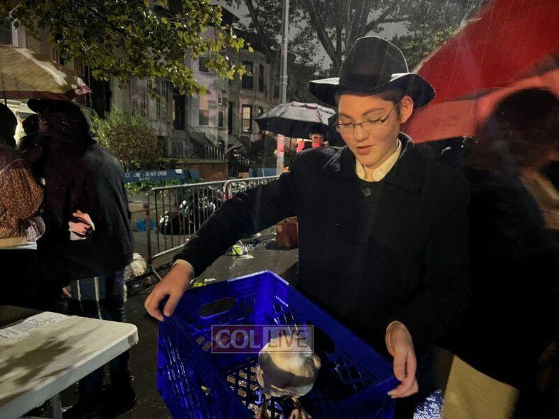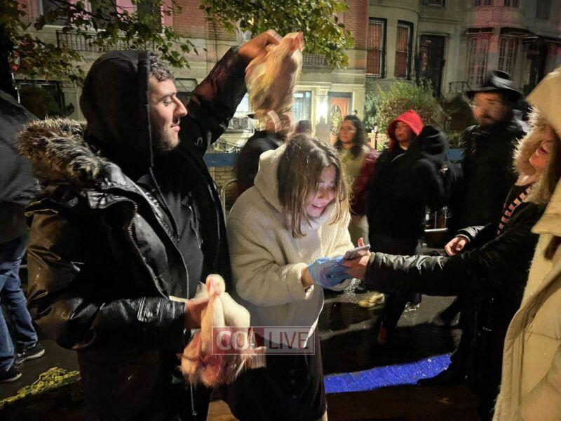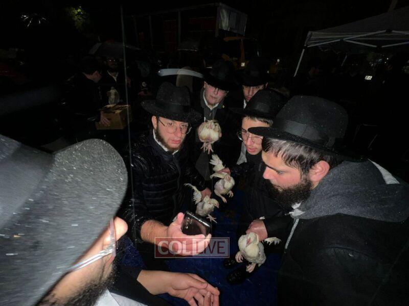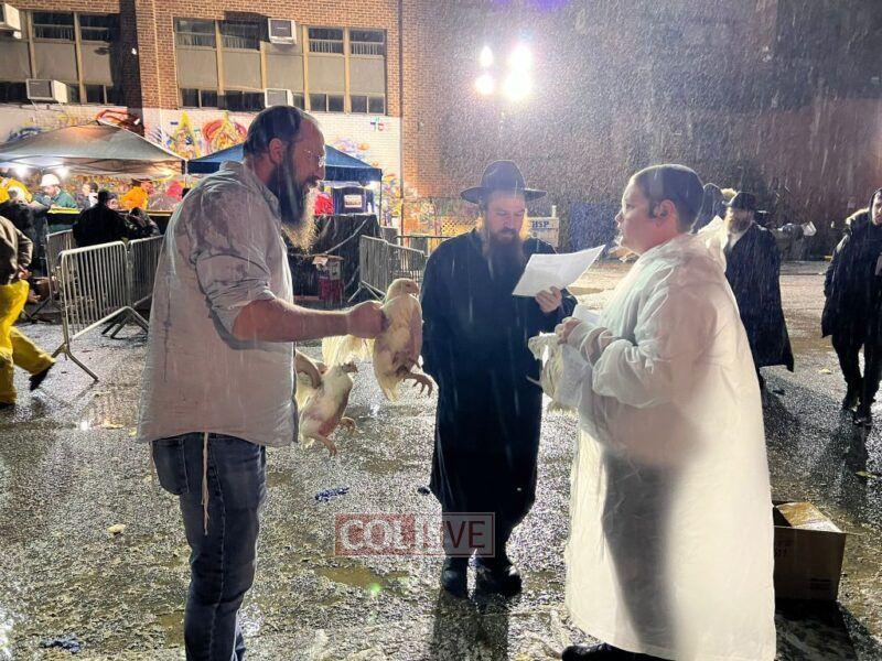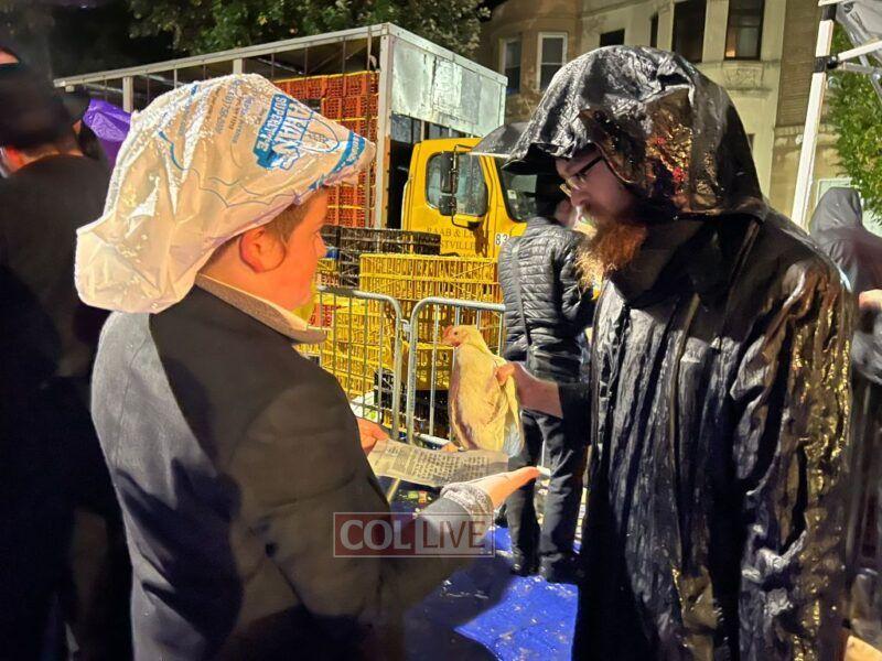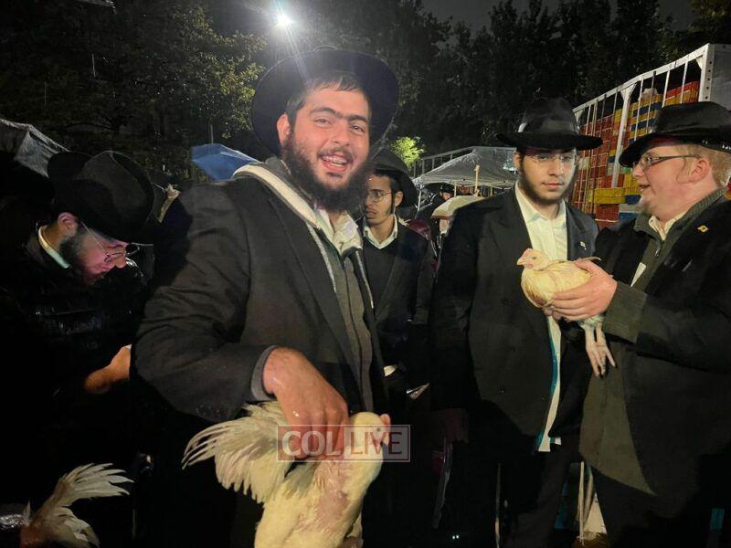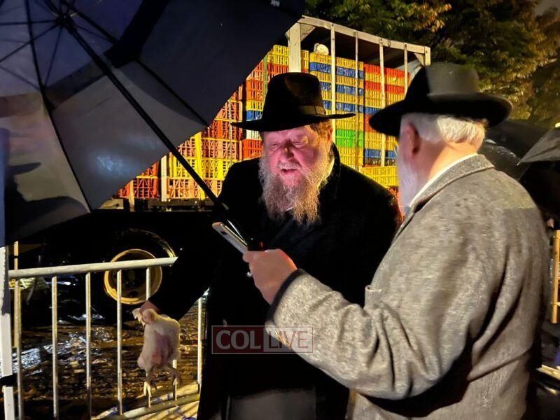 Hundreds braved the rain to perform the Kapparos custom in Crown Heights on Monday night, Erev Yom Kippur. Photos