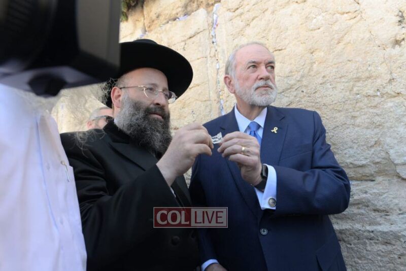 Immediately upon landing at Ben Gurion International Airport, Huckabee headed straight to the Western Wall in Jerusalem, where he placed a tiny prayer note in between the stones of the Wall that was written by President Donald Trump.
