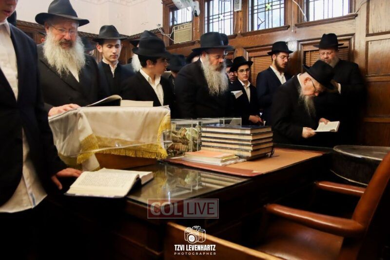 A crowd gathered in the Rebbe's room at 770 Eastern Parkway for Mincha prayers on Erev Yom Kippur. Photos