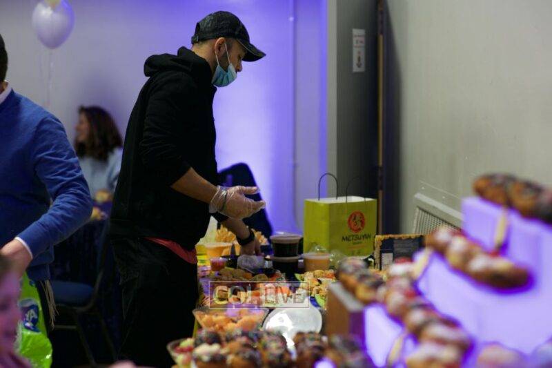 Mr. Aaron Spiro and Mr. Simi Wenger, Hanholah members and co-organizers of the event, distributed gifts to the staff, their spouses, and children. Mr. Spiro addressed the crowd, expressing the great sense of gratitude and deep appreciation that everyone has for the hard work that each staff member invests in their avodas hakodesh, day in and day out. Each man received a gift certificate for a free hat at Bellissimo Custom Hats, valued at $270 USD, and each woman (wife of staff member), received a portable blue tooth speaker, as well as cosmetics. Every child received an envelope with a crisp $5 bill for Chanukah gelt. At the end of the program, the staff sat down for a chassidishe farbrengen, in the atmosphere of Ish es re’ayhu ya’azoru ule’ochiv yomar chazak.