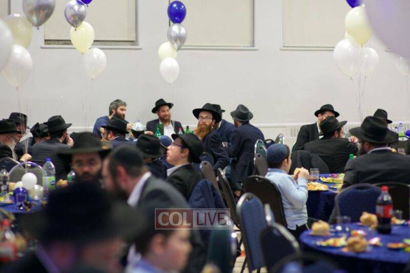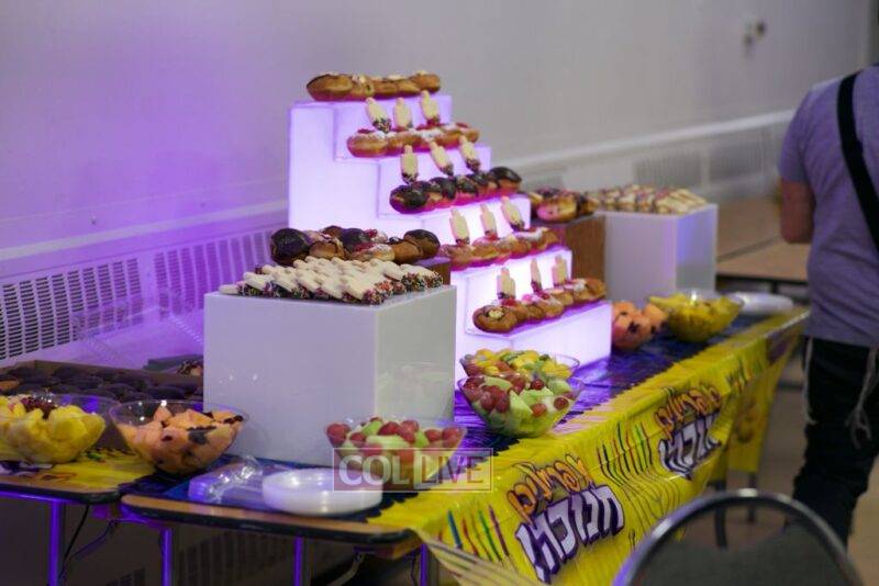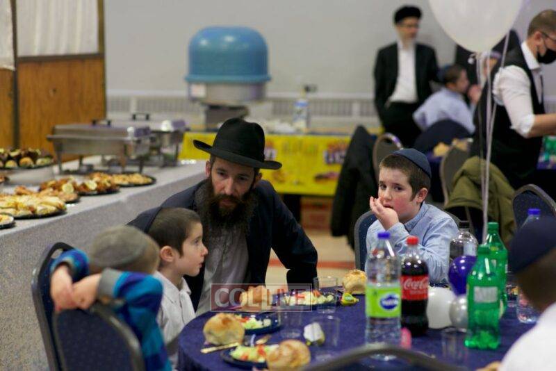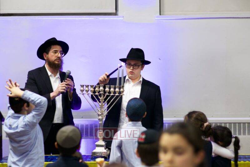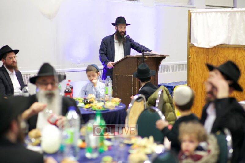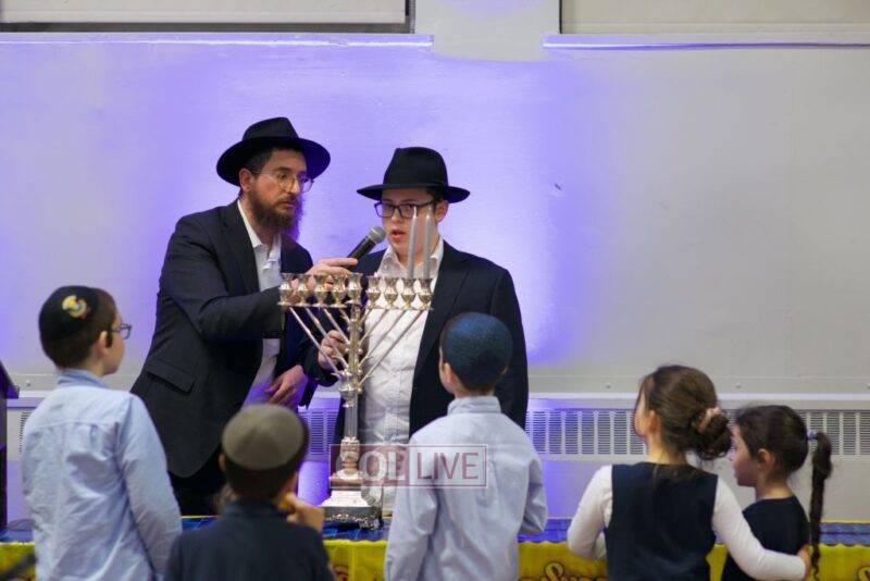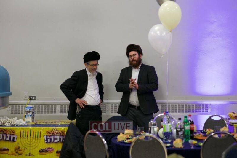 On the second night of Chanukah over 200 staff members and their families – men, women, and children – joined together at Yeshiva Tomchei Tmimim Lubavitch – Rabbinical College of Canada to celebrate a grand Chanukah party organized by the Yeshiva’s Hanholah Gashmi. The idea of the event was to have a type of “mini Kinus Hashluchim” celebrating the Rebbe’s shlichus in chinuch, which all those present, the staff and their families, share mutually.