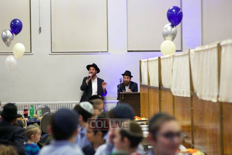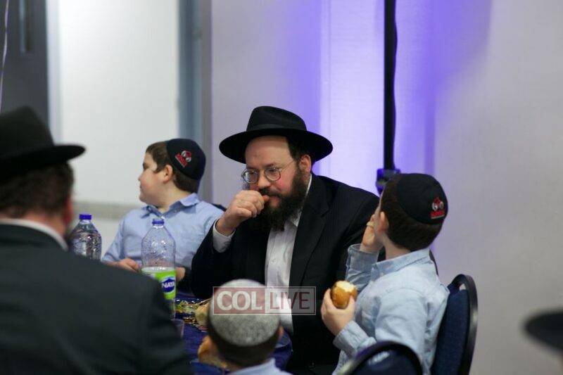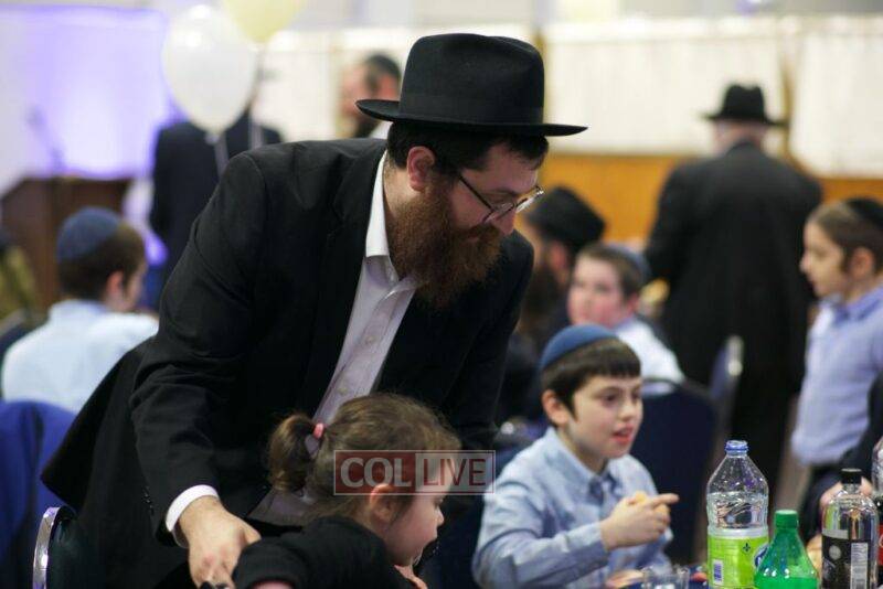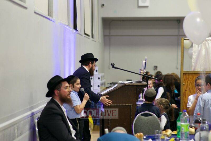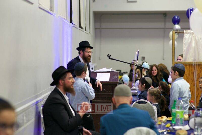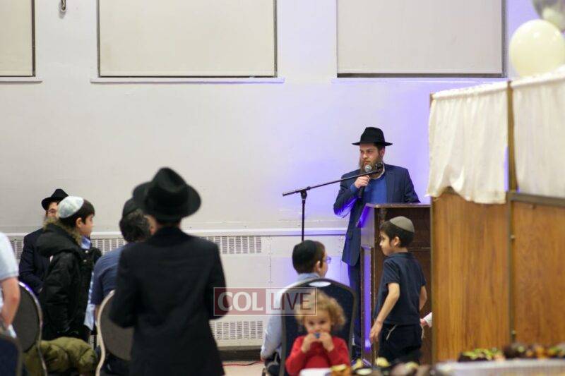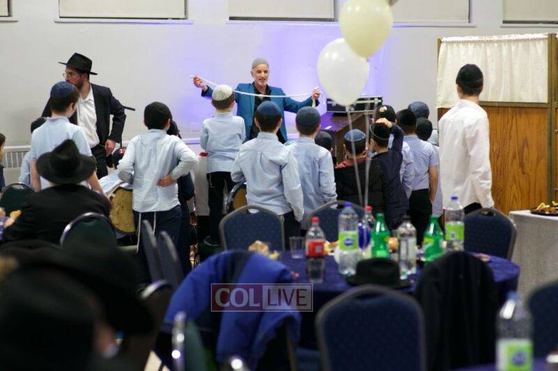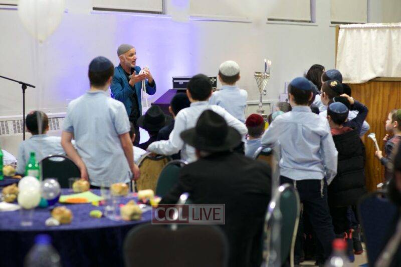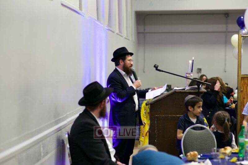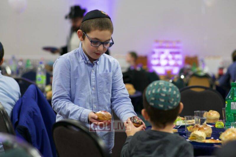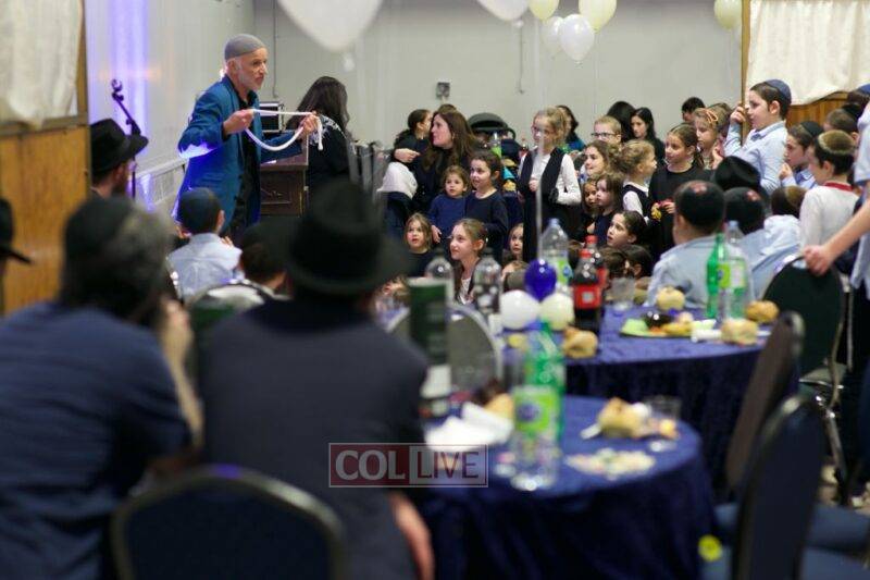 As MC for the event and as one of the evening’s organizers, Rabbi Moshe Cohen, the Yeshiva’s Director of Development, pointed out that Chanukah is rooted in the word chinuch and Rabbi Mordechai Wenger, from the Yeshiva’s Vaad Haruchni, delivered a dvar Torah along with some divrei chizuk, followed by a menorah lighting by talmid Levi Menkes. A special children’s program was led by Rabbi Nachum Greenwald, who told an uplifting and entertaining story before calling up talmidim for the 12 pesukim. The children’s program ended with a special magic show by the Amazing Todsky.
