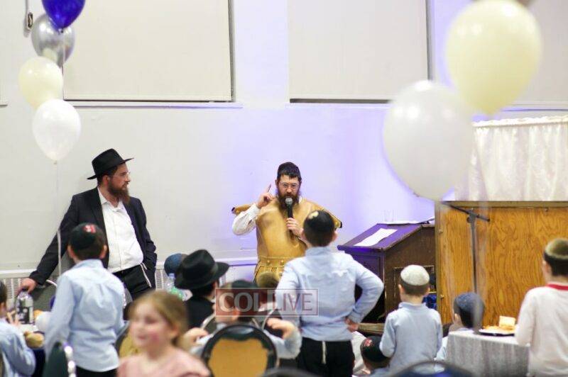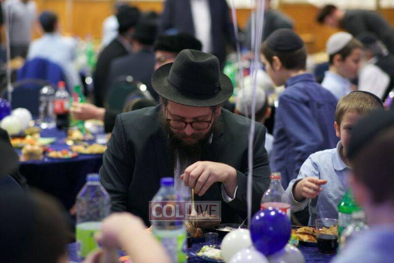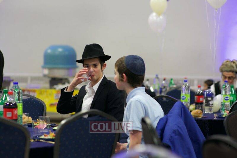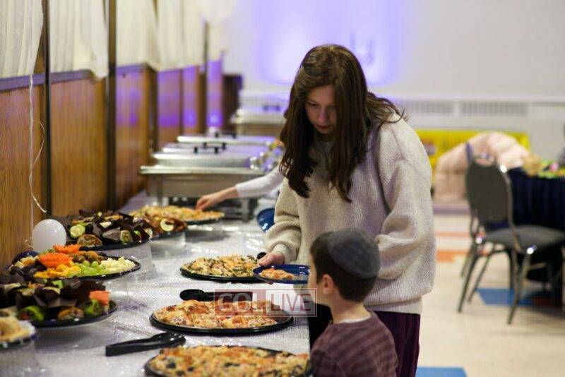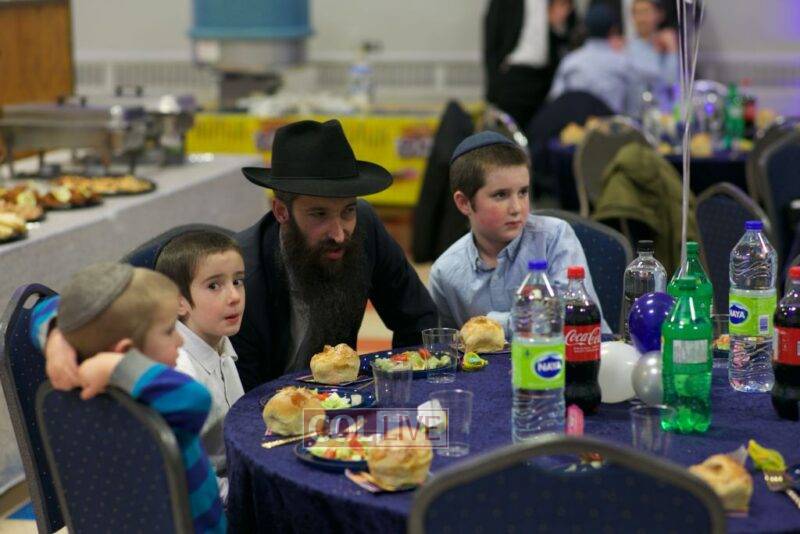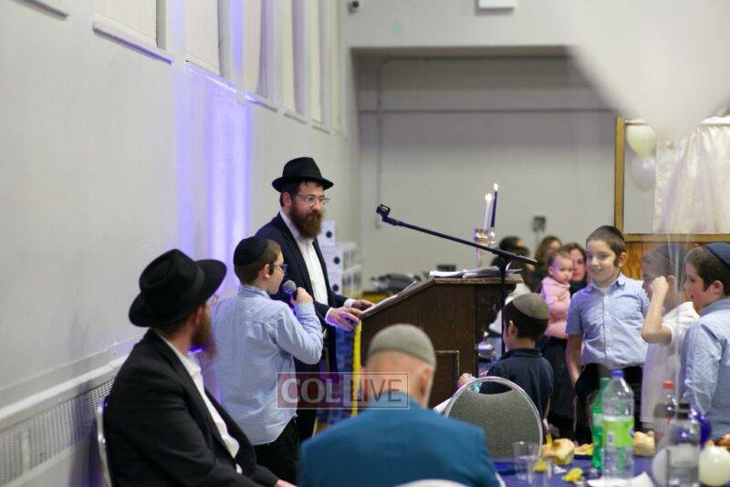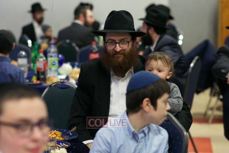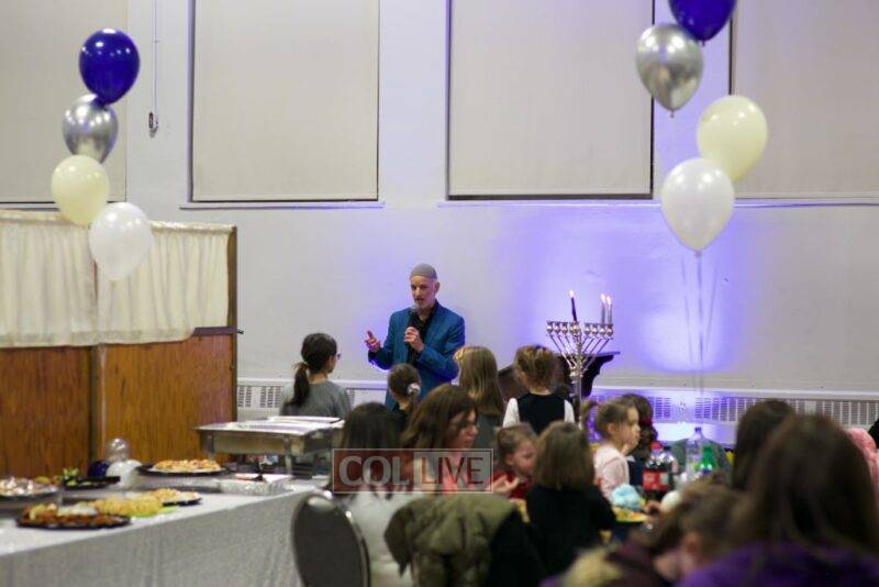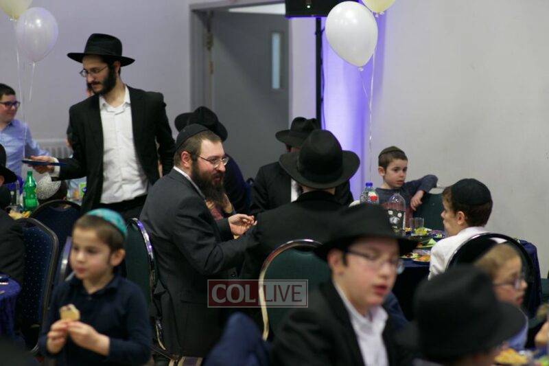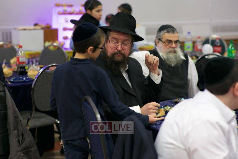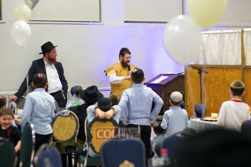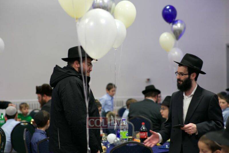 As MC for the event and as one of the evening’s organizers, Rabbi Moshe Cohen, the Yeshiva’s Director of Development, pointed out that Chanukah is rooted in the word chinuch and Rabbi Mordechai Wenger, from the Yeshiva’s Vaad Haruchni, delivered a dvar Torah along with some divrei chizuk, followed by a menorah lighting by talmid Levi Menkes. A special children’s program was led by Rabbi Nachum Greenwald, who told an uplifting and entertaining story before calling up talmidim for the 12 pesukim. The children’s program ended with a special magic show by the Amazing Todsky.