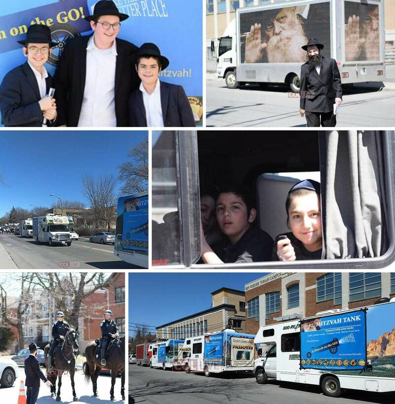 Four Mitzvah Tanks, a video truck and horses paraded through the streets of Montreal this past Wednesday, in honor of Yud Alef Nissan, marking the Rebbe’s 118th birthday.