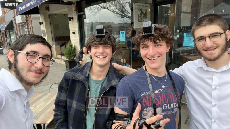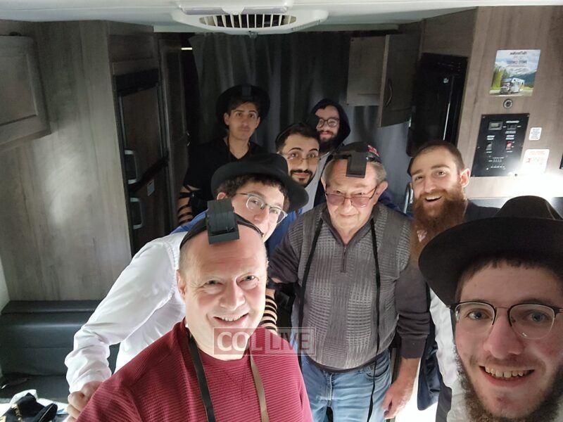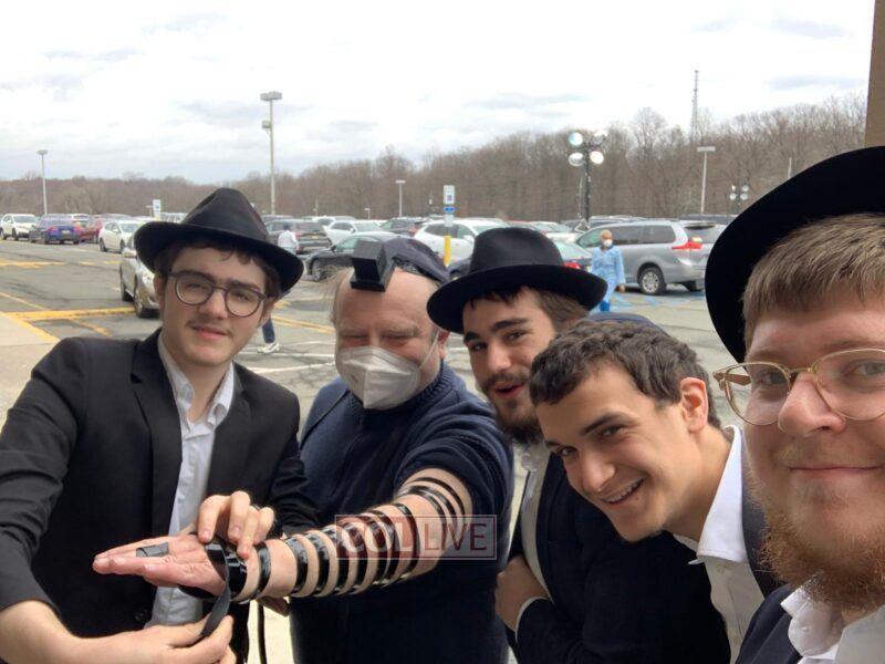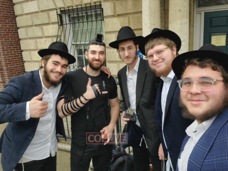 As they arrived at Military Park, the center of Downtown Newark, the bochurim from the Yeshiva, drivers and children from the Cheder in Morristown all broke into a spontaneous dance, attracting hundreds of onlookers, many of them came over to put on Teffilin and inquire about the event.