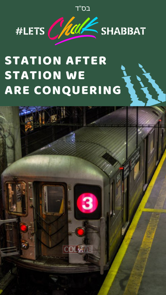 Participants can choose a stop along the 3 train line, come pick up a kit with stencil, chalk and chalk spray, and head out to their location. There, they are going to leave a chalk message about the Shabbos candle lighting time, and distribute neshek and Tishrei guides to passersby.