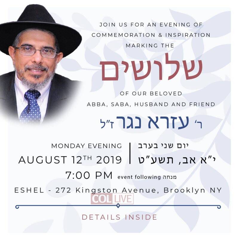 An event marking the Shloshim – 30 days since the passing, of R’ Ezra Nagar OBM will take place Monday evening in Crown Heights.