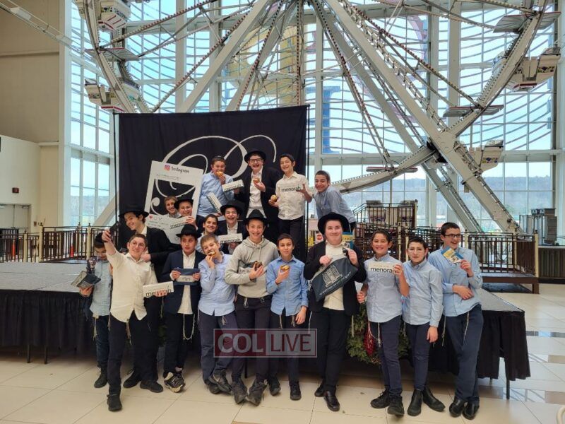 Students of the Mechina division of Cheder Chabad in Monsey, New York, went on Mivtzoim over the Wednesday and Thursday of Chanukah, bringing the holiday to senior living homes and bustling shopping malls.
