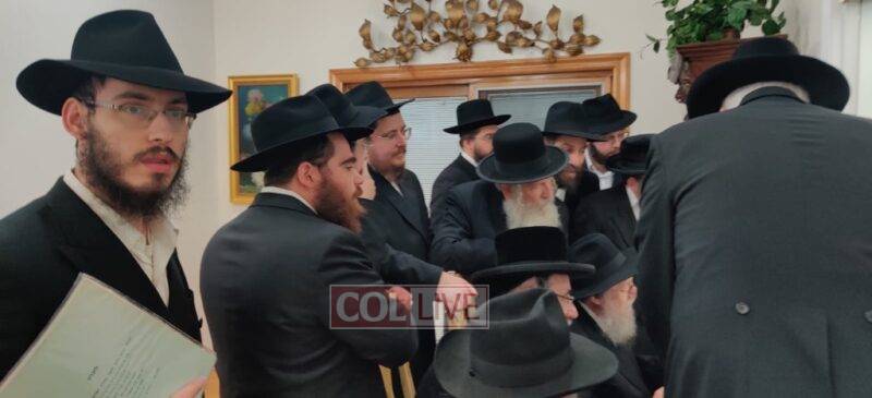 A delegation of Chabad rabbis in Monsey greeted the Gerrer Rebbe who is visiting New York for the wedding of his grandchild And presented him with a new sefer on the Rambam. Photos