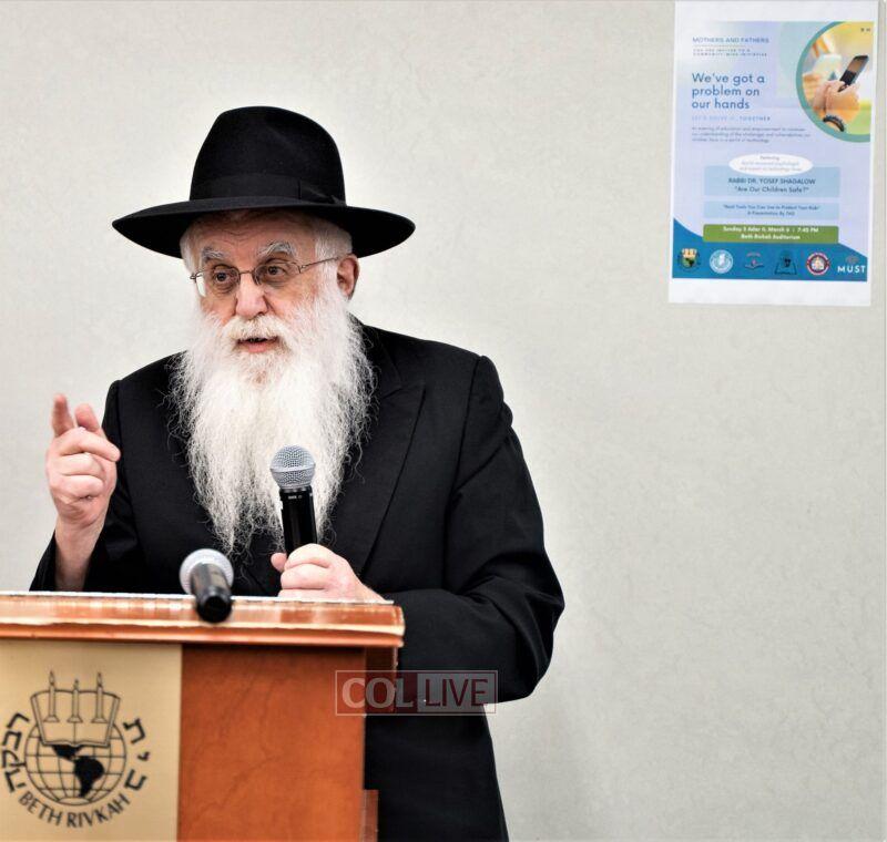 Rabbi Dr. Yosef Shagalow, world renowned psychologist and expert on technology issues, was flown in from Minnesota to Montreal for two days. He gave an informative and inspiring talk to mothers and fathers at a special event on Sunday night, in the Beth Rivkah auditorium.