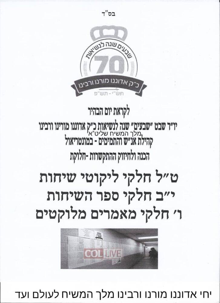 The initiative is being done in honor of Yud Shvat, the 70th anniversary of the Rebbe becoming the 7th Rebbe of the Chabad-Lubavitch movement in 5710.