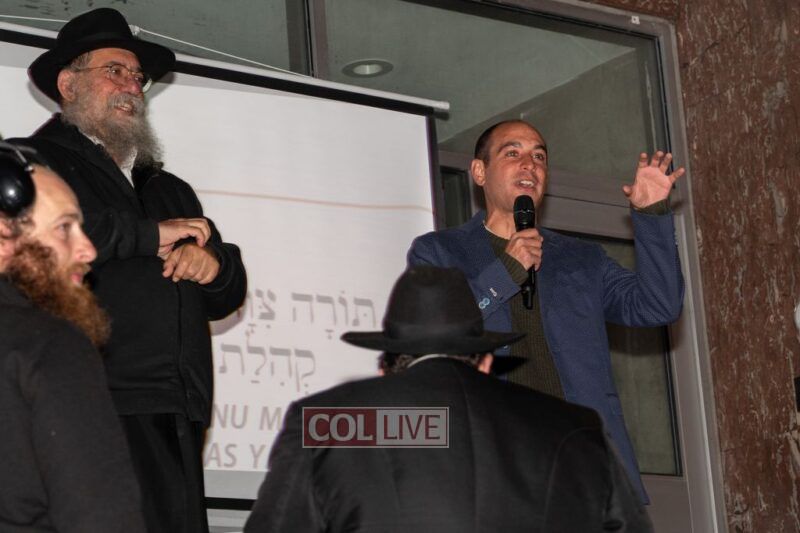 The event featured Avraham Zirkind at the keyboard with his brother Sender leading the singing, accompanied by DJ Elisha Sousson, creating an energetic and festive vibe that had everyone dancing.