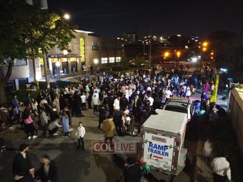 The event took place in front of the Tomchei Temimim Yeshiva and was organized by Rabbi Dovid Cohen.