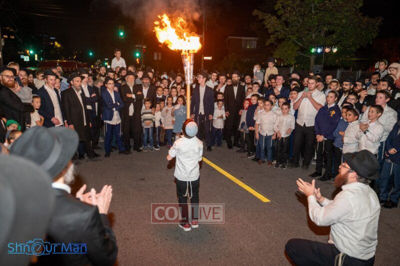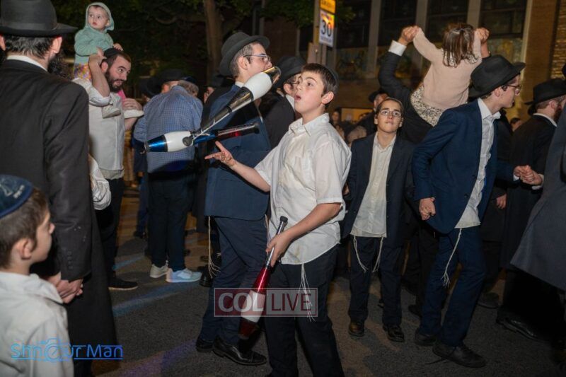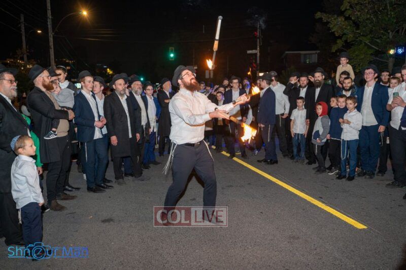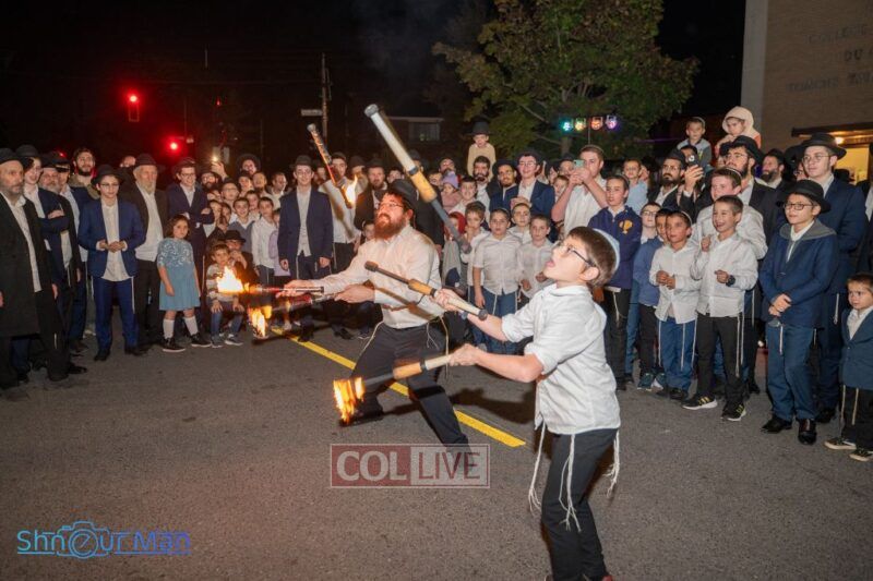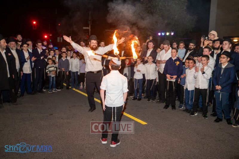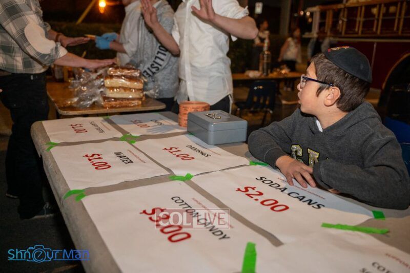 R’ Nochum and Chaim Greenwald performed acrobatics and juggled fire, and cotton candy and refreshments were sold as well.