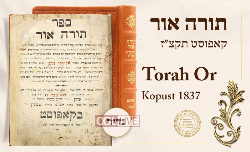 Among other items, a place of honor is given to first editions of books by the Admor Hazaken including a rare variant, auctioned for the first time, of Shulchan Aruch HaRav Choshen Mishpat – Kopust 1814 edition. This is a pedigreed copy! On the flyleaf, there is a notation indicating that the book had belonged to Rabbi Nosson Note Rosh Av Beit Din of Chernobyl: “זה השולחן ערוך שייך להרב המופלג והמפורסם וחשוב בכל המון עם כמ”ה נתן נטע ראב”ד מטשרנאבל וסביבותיה [This Shulchan Aruch belongs to the greatly distinguished and renowned Rabbi Nosson Note, Rosh Av Beit Din of Chernobyl and its environs]. The Gaon Rabbi Nosson Note served as the Av Beit Din of Chernobyl during the time of the Admor Rebbe Rabbi Mordechai Twersky, the second Admor of Chernobyl. Responsa addressed to him appear in Shut Tzemach Tzeddek. Also featured is a fine copy of the first edition of Torah Or – Kopust 1837, in an elegant leather binding.