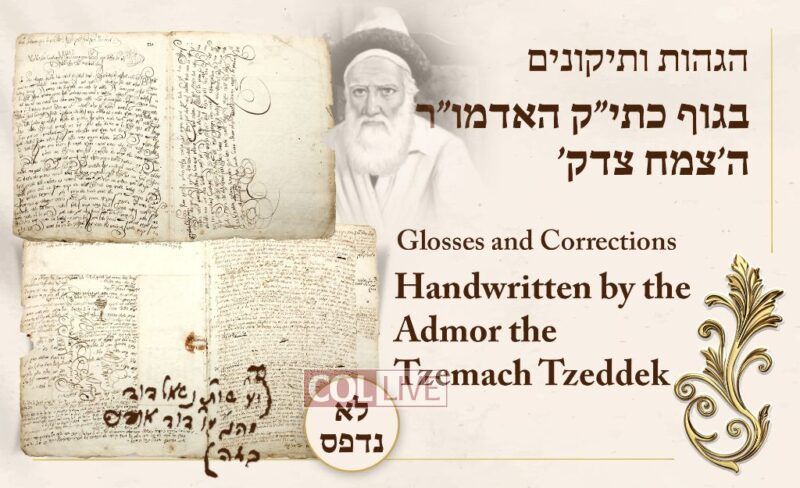 The auction introduces a letter by the Maharil of Yanovitz – the brother of the Admor Hazaken, Baal HaTanya – and other historical revelations, including glosses handwritten by the Tzemach Tzeddek. Also included are letters and manuscripts from the hidden treasures of the Gaon and Chassid Rabbi Yissachar Ber HaLevi Horowitz, the renowned Moreh Tzeddek of Lubavitch during the time of the Tzemach Tzeddek. Rabbi Yissachar Ber possessed many manuscripts by the Maharil of Yanovitz and the Tzemach Tzeddek of Lubavitc and many other Chabadic Geonim. His estate also contained many original manuscripts and numerous copies that he transcribed for himself from manuscripts he saw.