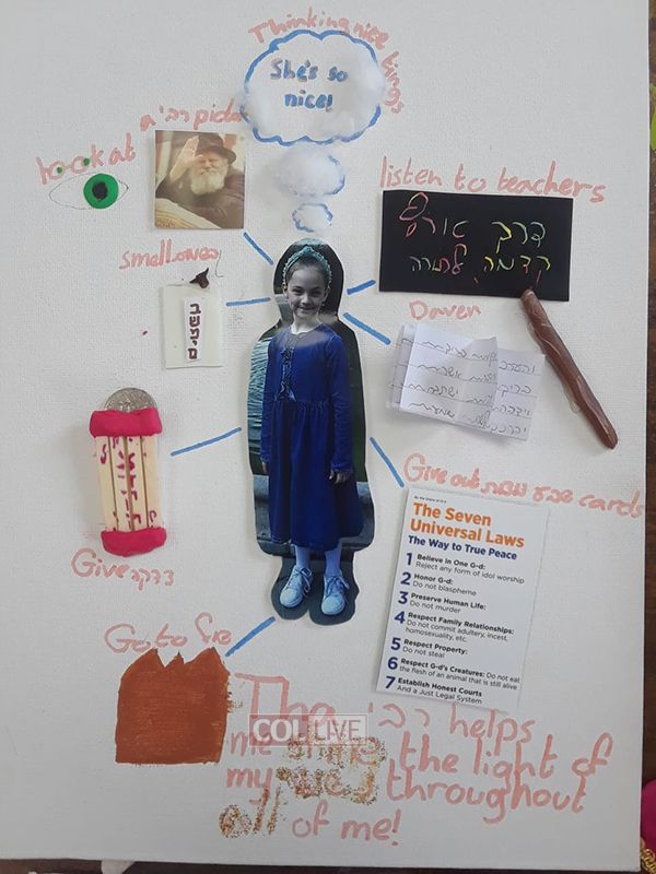 In third place was Chana Tevel from Ateres Chaya Mushka, Crown Heights, who put together a depiction of how the Rebbe teaches us how to make every aspect of life neshamadik.