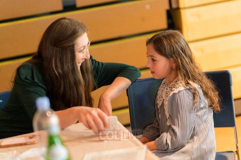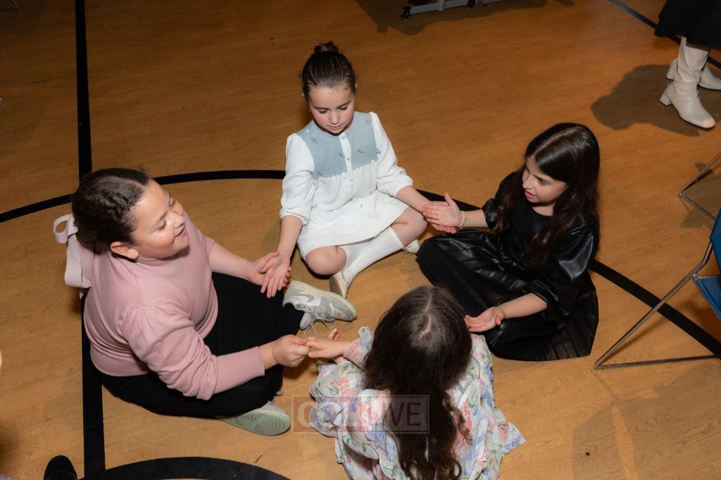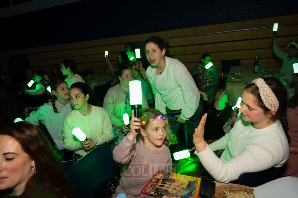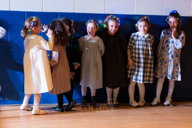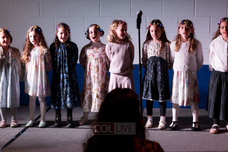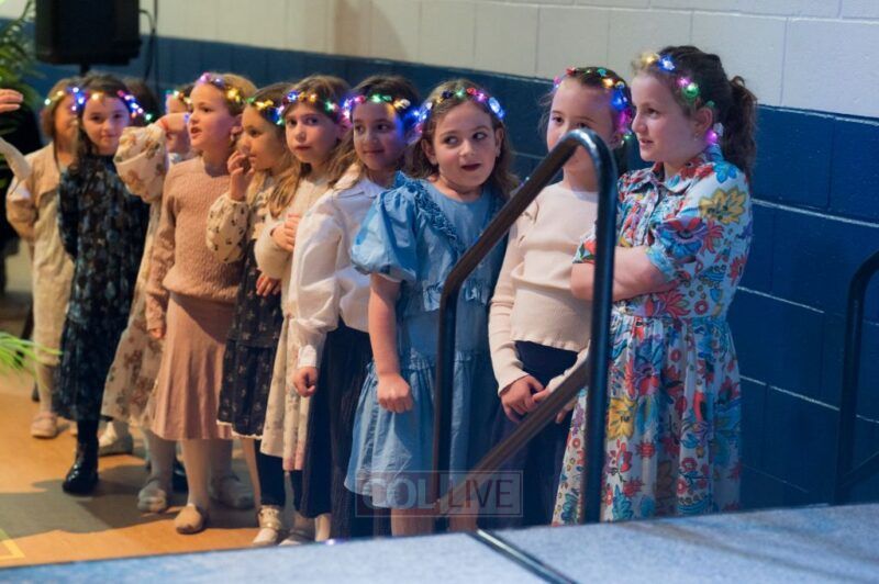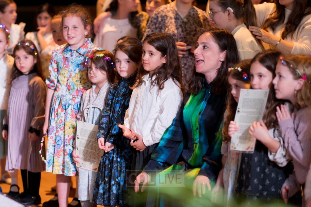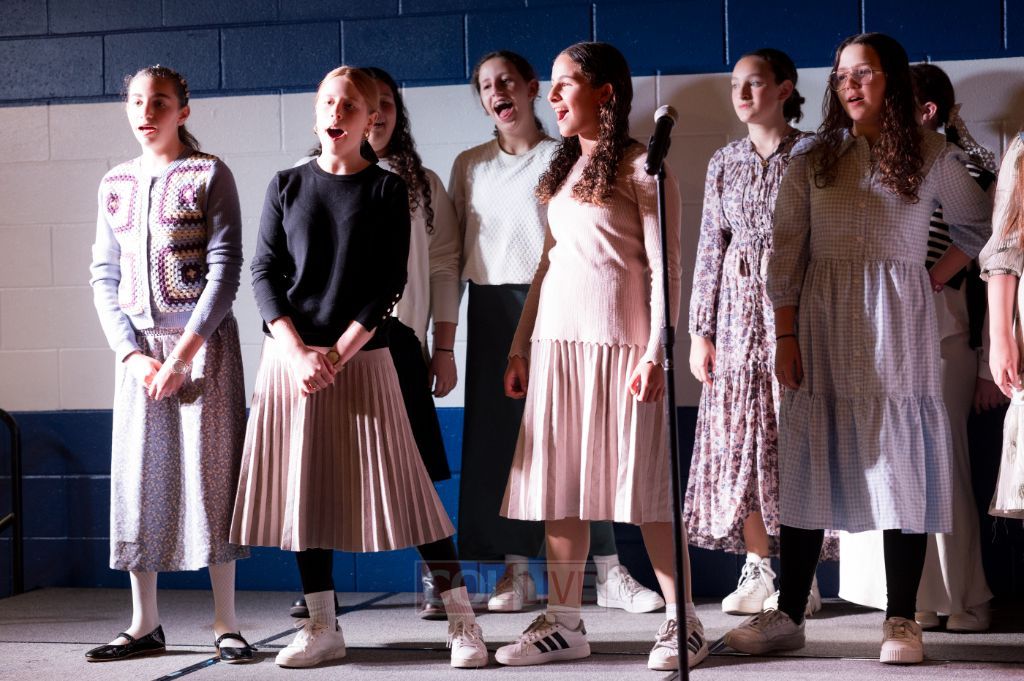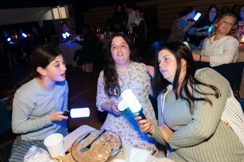 Every class took part in the program. Younger classes prepared Motzoei Shabbos Vayiten Lecha cards and centerpieces, one class performed as the choir, another class presented a mother-daughter song, and the high school girls presented a split-narration story told from two sides of the room.