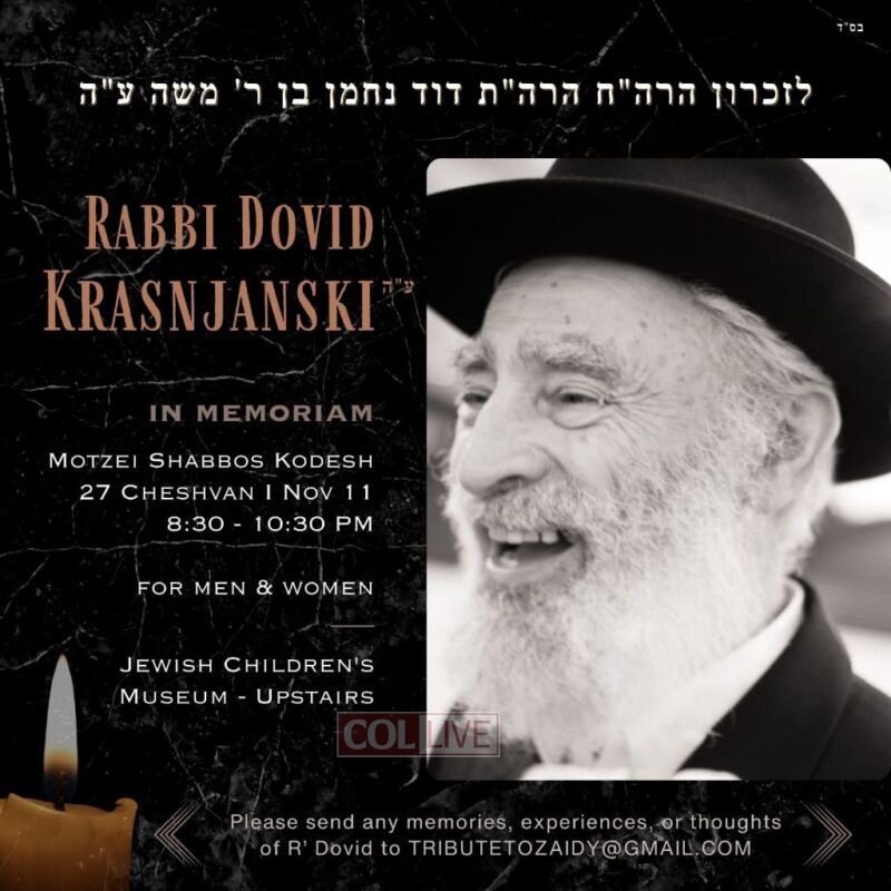 An event marking the Shloshim – 30 days since the passing of Rabbi Dovid Krasnjanski obm will take place Motzei Shabbos in Crown Heights.