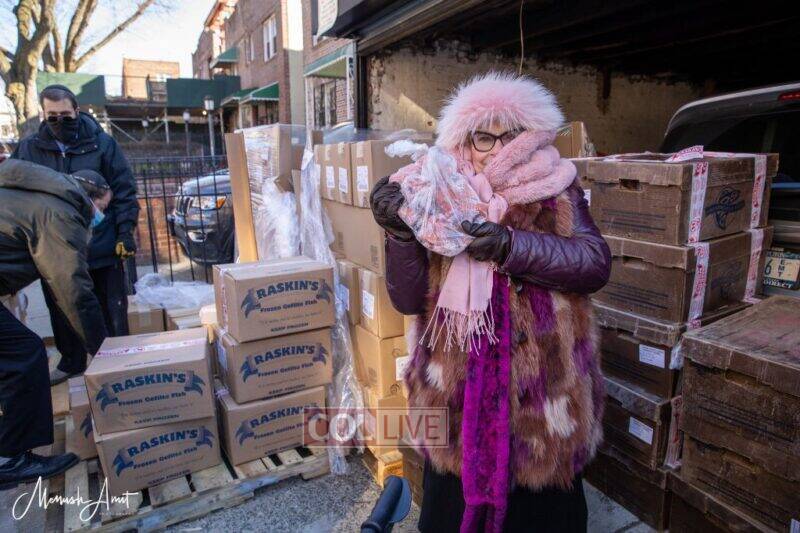 As always, hundreds of Crown Heights families will receive chickens and fish as well as other important items for their Yom Tov tables.