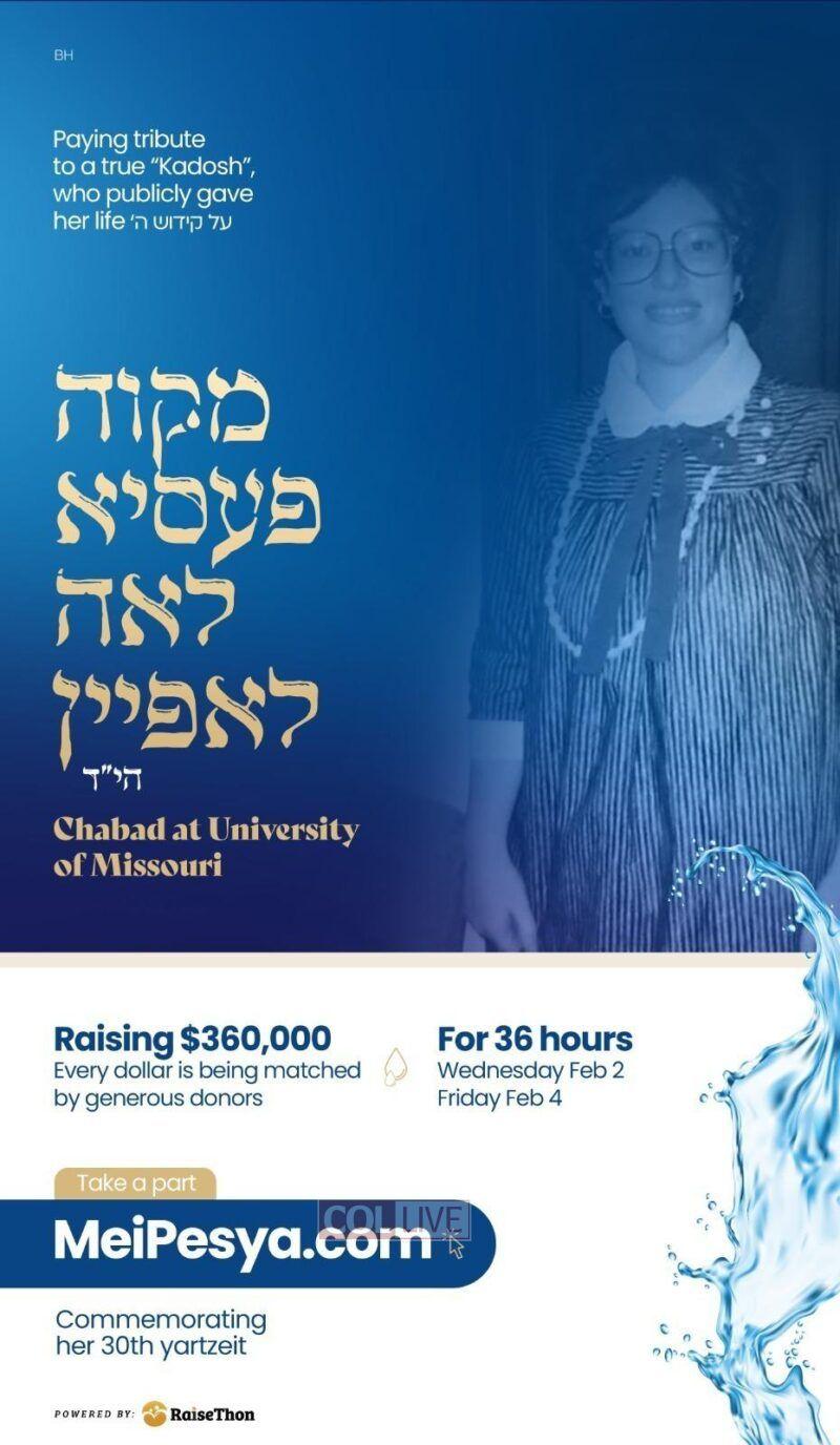 On my mother’s yahrzeit, Beis Adar Rishon, we will be starting a fundraising campaign to fund this endeavor. It would be an honor for our family, to have the community that helped raise us in the most trying times, partner with us now, in the creation of Mikvah Mei Pesya Leah h’yd.