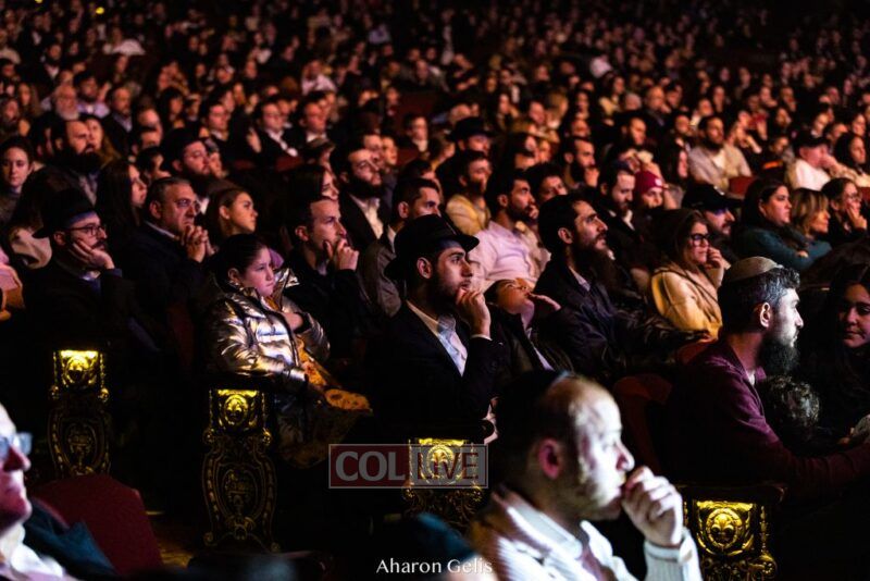 The sold out theater united Jews of all types from all over the New York area and beyond, who sang along with the heartfelt melodies taught by the Chabad Rebbeim and danced together to joyous and upbeat niggunim of simcha.