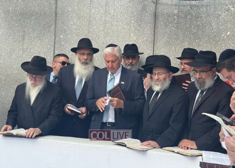 In a solemn moment at the Ohel, County Executive Blakeman offered prayers for peace in the Middle East and for the safe release of all hostages.