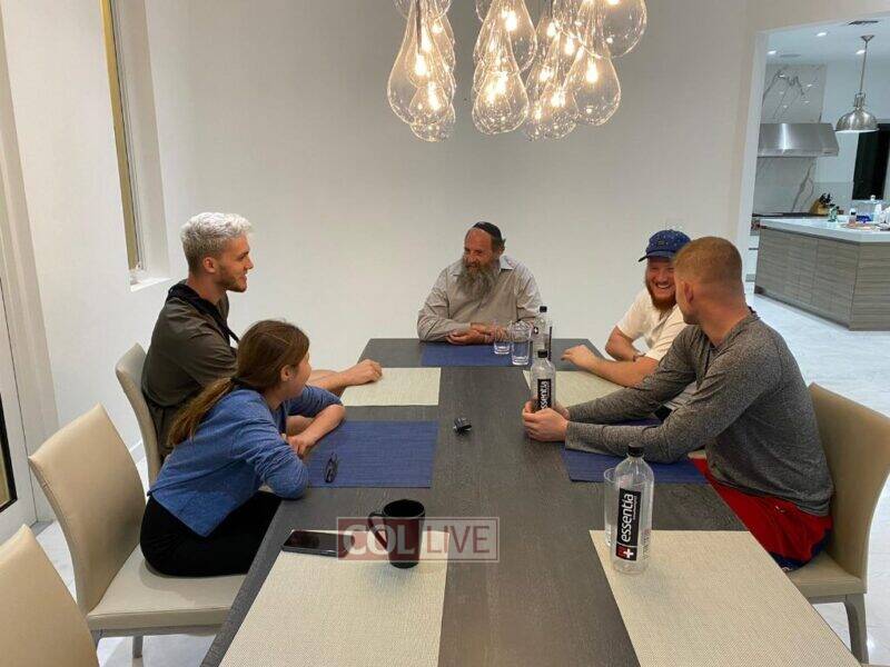 Leonard recently celebrated Shabbat dinner at the rabbi’s home with his family and several children and teens from the area, including Tomer Saguey who recently celebrated his Bar Mitzvah and received a signed size 16 basketball shoe as a gift.