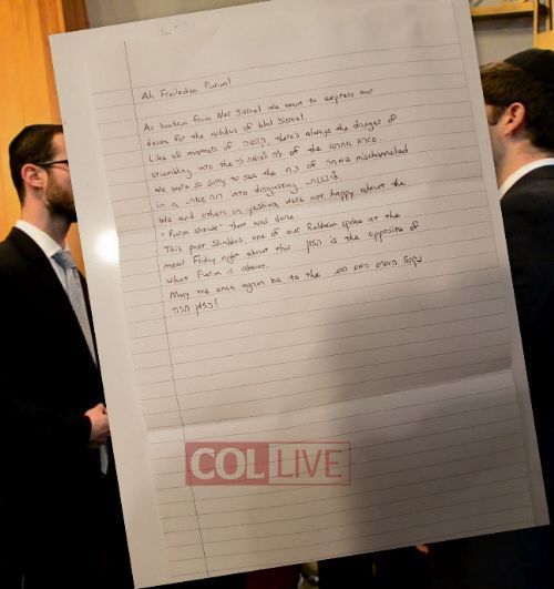 The letter discussed their remorse over the display at Ner Yisroel’s Mechina high school created by fellow students in honor of Purim. It caused widespread uproar over its mockery of Chabad’s customs and even the Rebbe himself.