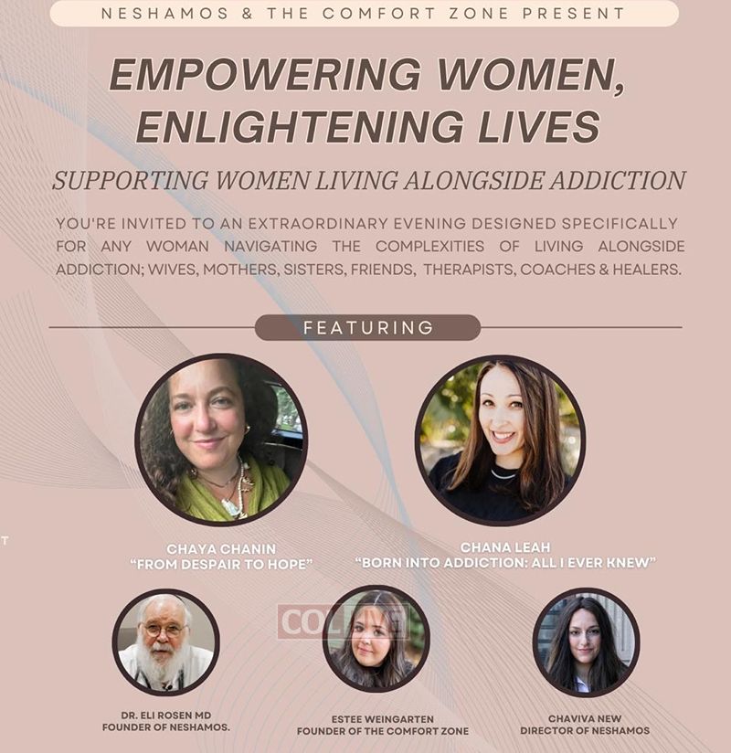 This Sunday, Dec 22nd Neshamos and the comfort zone will be hosting an evening of connection, inspiration and Support for women. The event will take place at the Garden House 1386 St John PLC Brooklyn 11213.