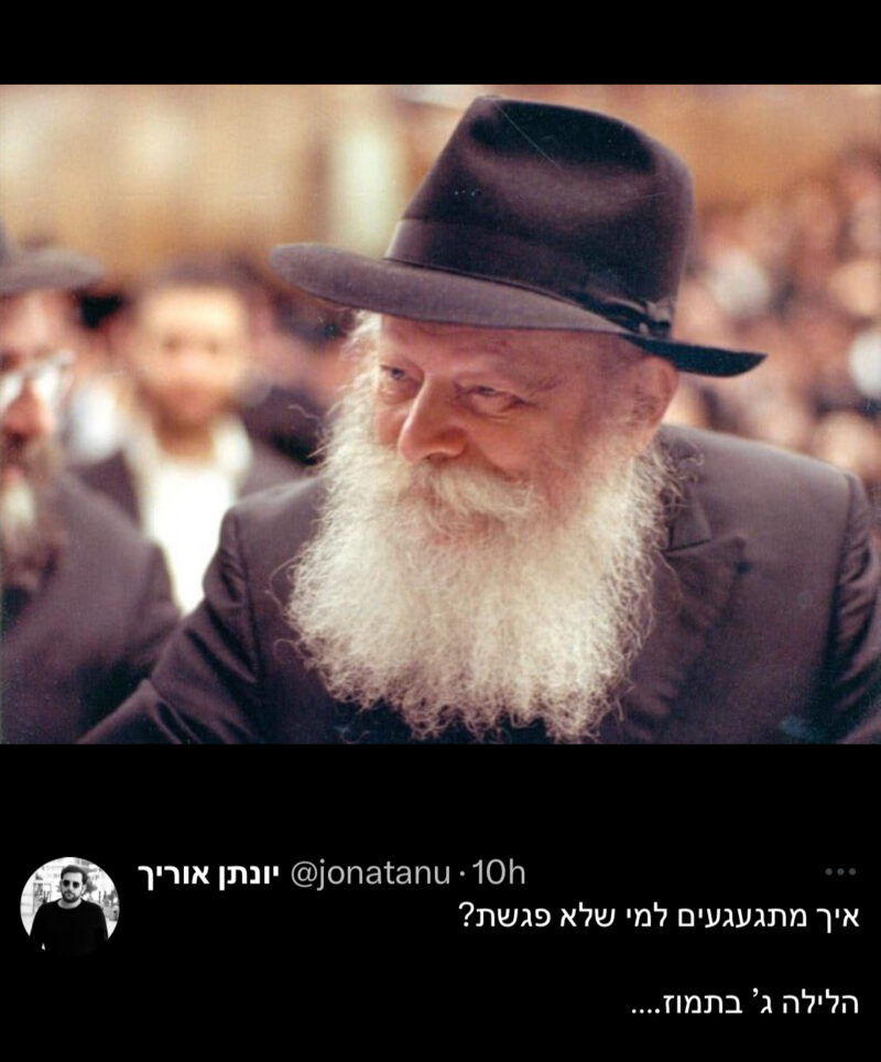 Jonatan Urich, a strategic advisor to Israeli Prime Minister Benjamin Netanyahu, wrote about post on the X social media platform anout the Rebbe’s yartzeit of Gimmel Tammuz.