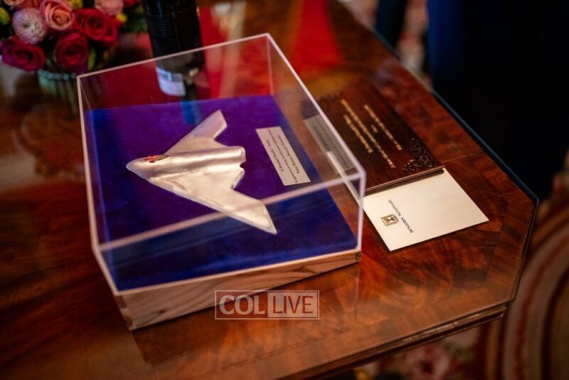 Privately, Netanyahu gave Trump two gifts of spiritual significance. The first was a mezuzah housed in a case fashioned from the shrapnel of an Iranian missile fired at Israel. The case was shaped like a Northrop B-2 Spirit stealth bomber—the same model used by the U.S. to strike Iran’s nuclear sites during the operation.