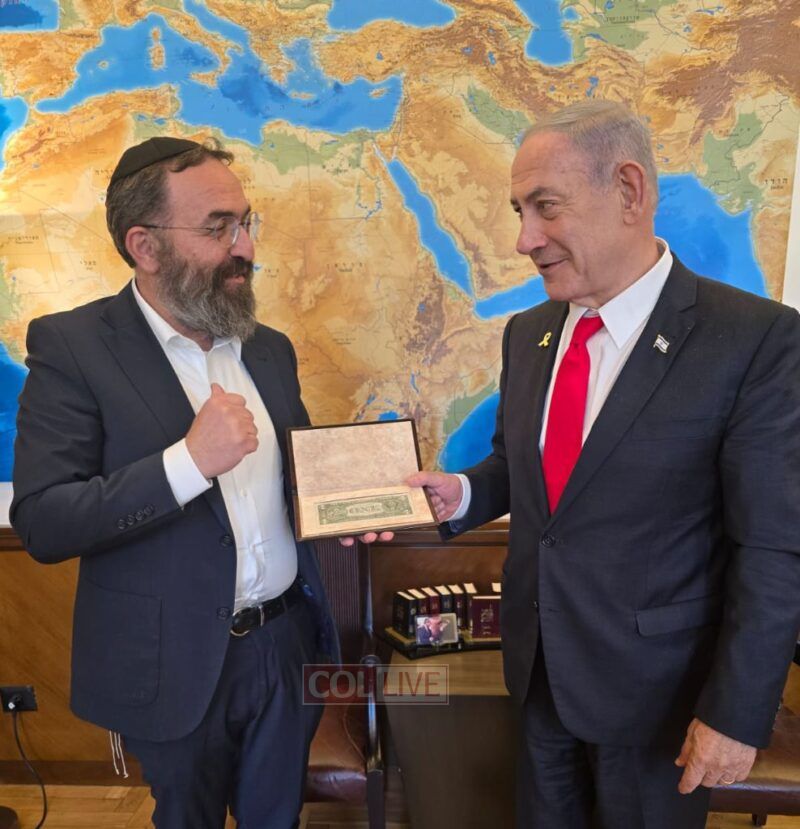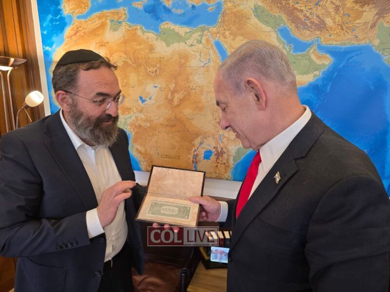 As COLlive.com has learned, the Rebbe’s dollar came to Netanyahu through Meir Bar Lev, the Chabad-affiliated Deputy Mayor of Beitar Illit. Ahead of Netanyahu’s diplomatic trip, Bar Lev gifted him a Rebbe dollar from 12 Kislev 5748 for success.