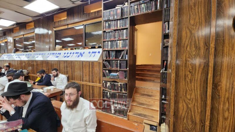 But access to that area was only possible by exiting the main shul and walking around the block to the entrance on Kingston Avenue, burdening on the bochurim and isolating them from the rest of the Yeshiva.