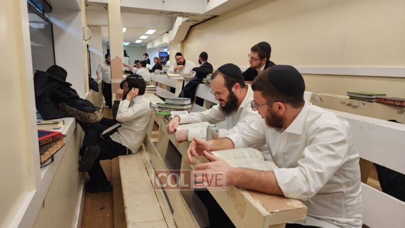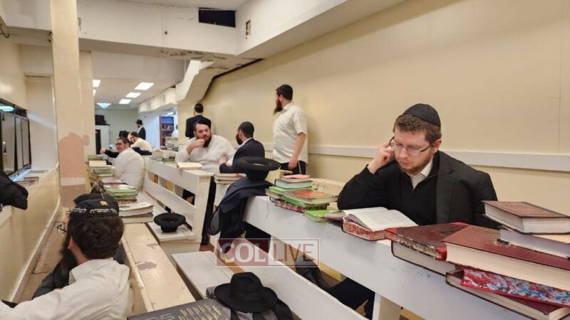 Due to a lack of space in the main shul, Yeshiva bochurim have spilled into a part of the Ezras Noshim, the women’s section, which is only fully used on Shabbos and Yomtov, or for special programs.