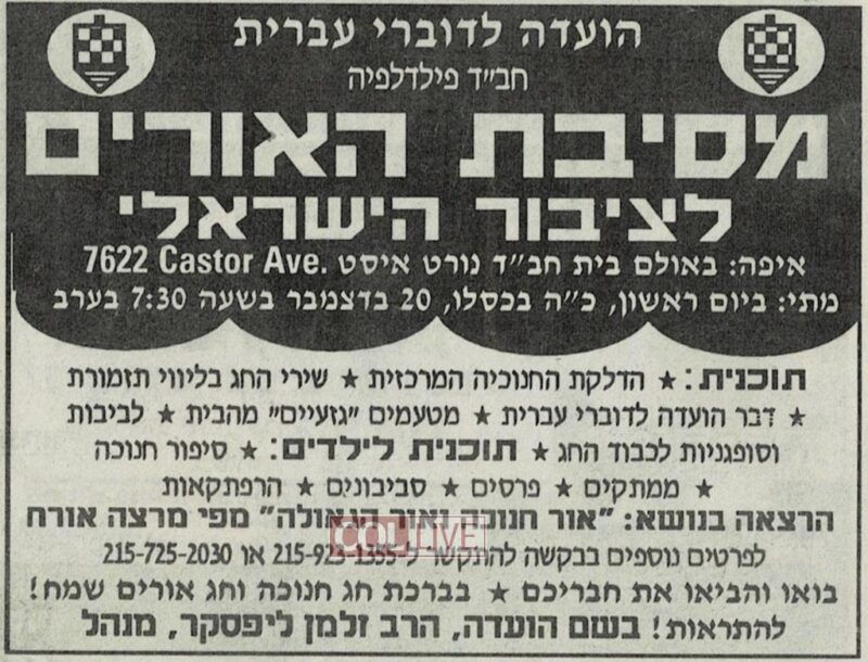 Over the years, Rabbi and Mrs. Lipsker founded Va’adah L’dovrei Ivrit Chabad, one of the first Chabad Israeli centers in North America. Based out of the Lubavitcher Center in the northeast, it catered to Hebrew speakers around the large city.