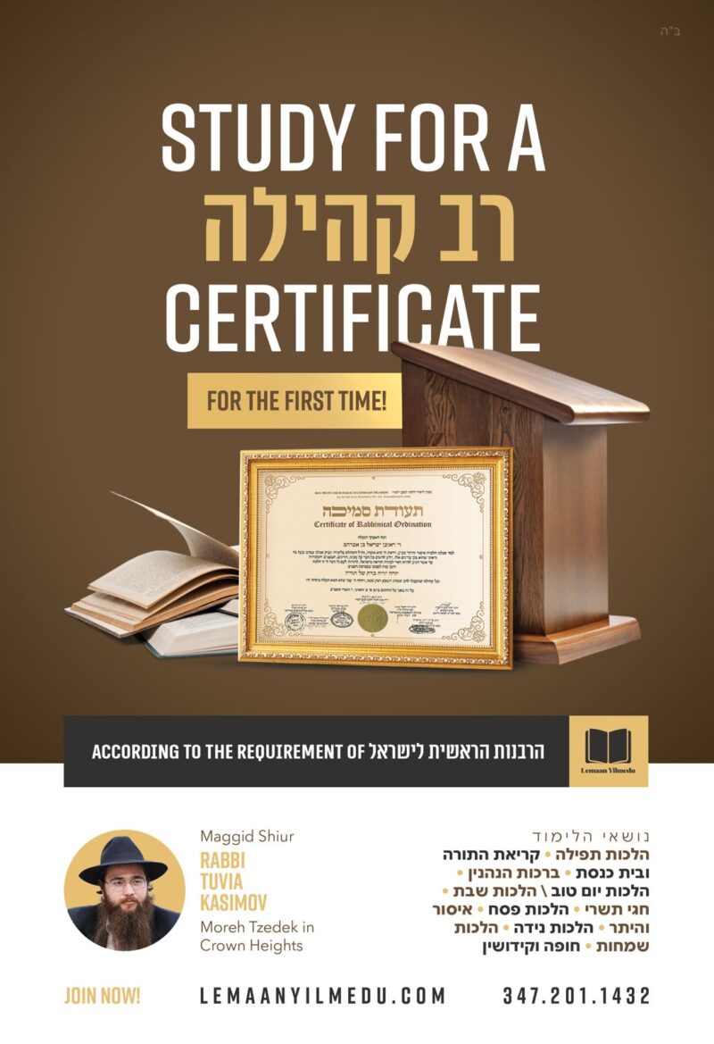 If you are a rabbi of a developing community or a shliach around whom a community is starting to develop, you are surely familiar with the problem: you have a “Yoreh Yoreh” semicha certificate stating that “any community you serve as rabbi and leader will be satisfied with him in all matters,” but the learning before marriage of Hilchos basar v’chalav and taaruvos do not help you with most of the questions that come to you daily. You receive questions on Hilchos Shabbos, are required to provide guidance during the holidays, and of course, you are the address for celebrations like weddings, or conversely, for non-celebratory events like funerals, and you were never trained for any of this.