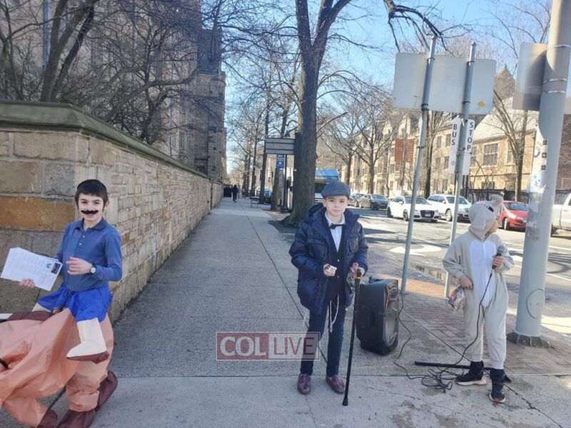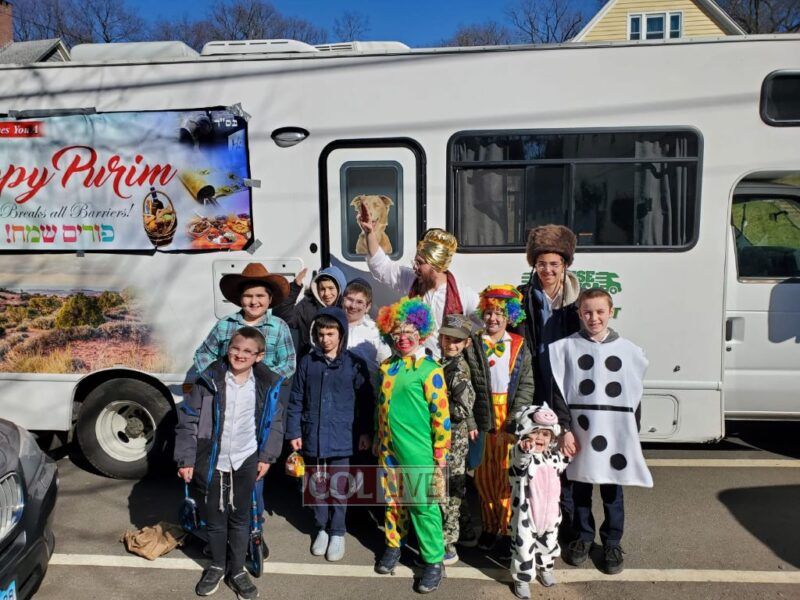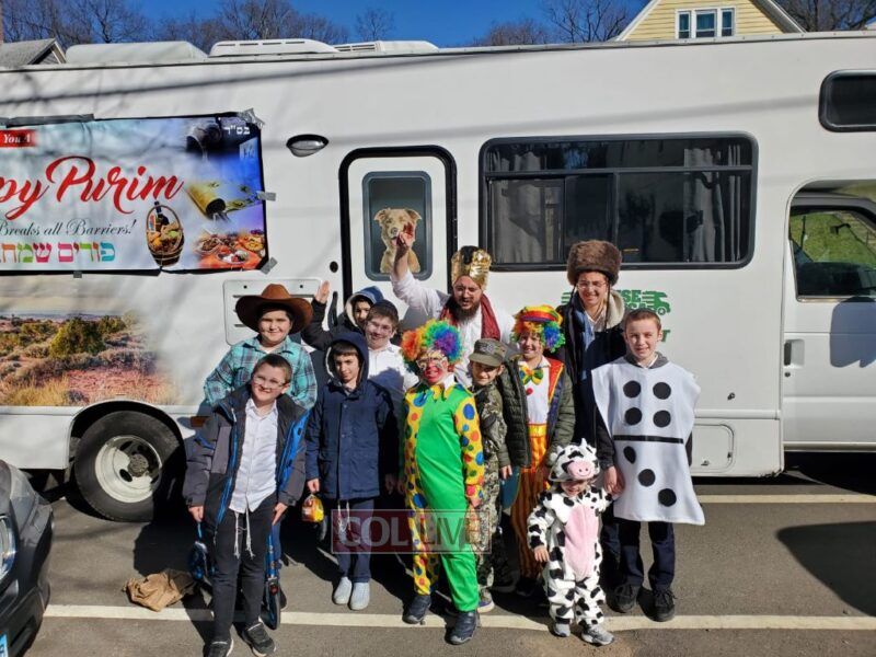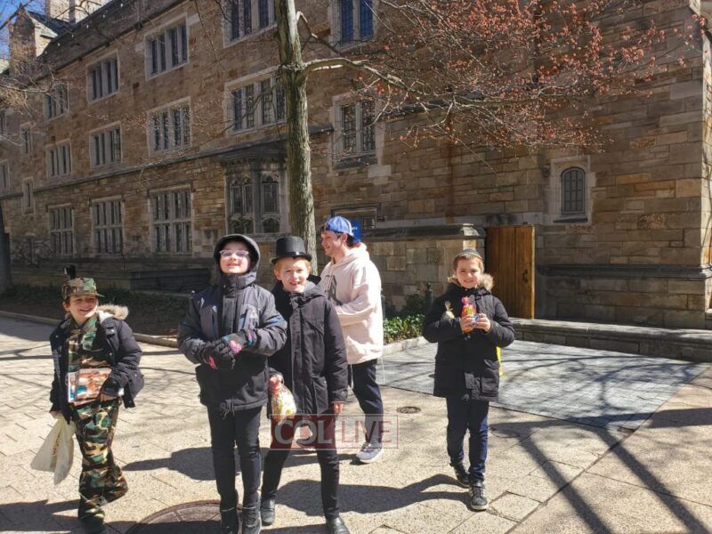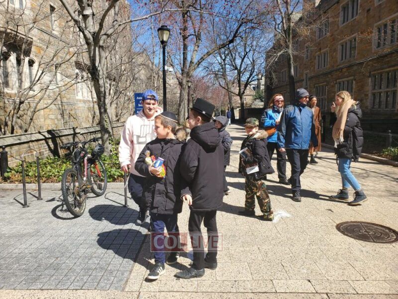 The mitzvah tank took 3 shifts with over 55 children to the campus area of Yale University of New Haven, giving many Yidden the opportunity to fulfill the mitzvos of Purim, and countless sheva mitzvos cards were given out.