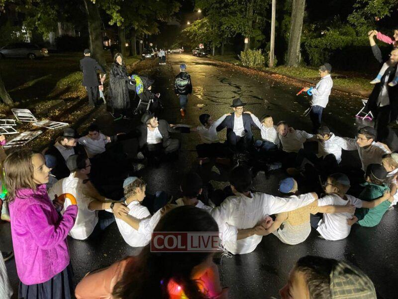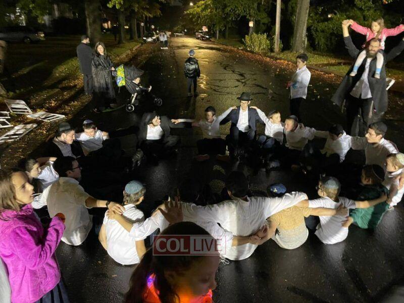 The New Haven Chabad community gathered for a community viewing of the Hakhel event at 770 Eastern Parkway on Chol Hamoed Sukkos, followed by joyous dancing. Photos