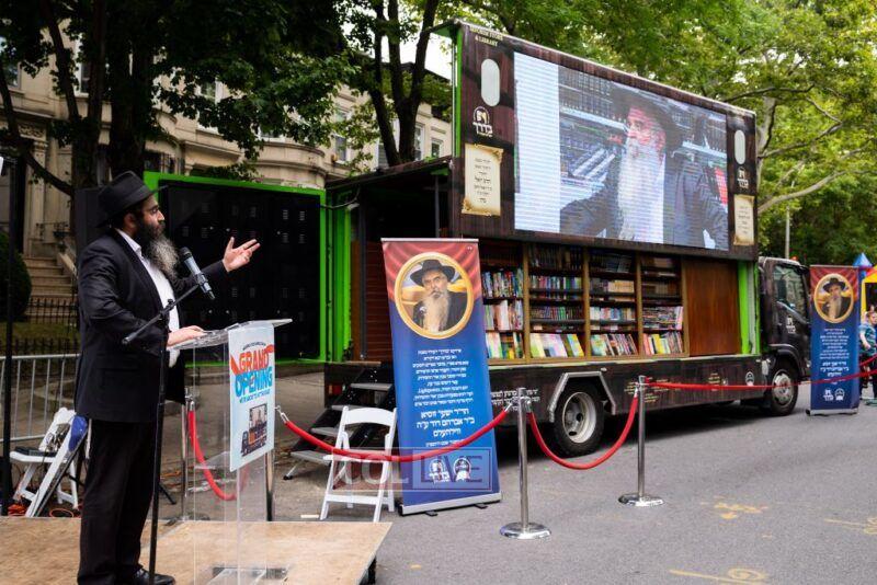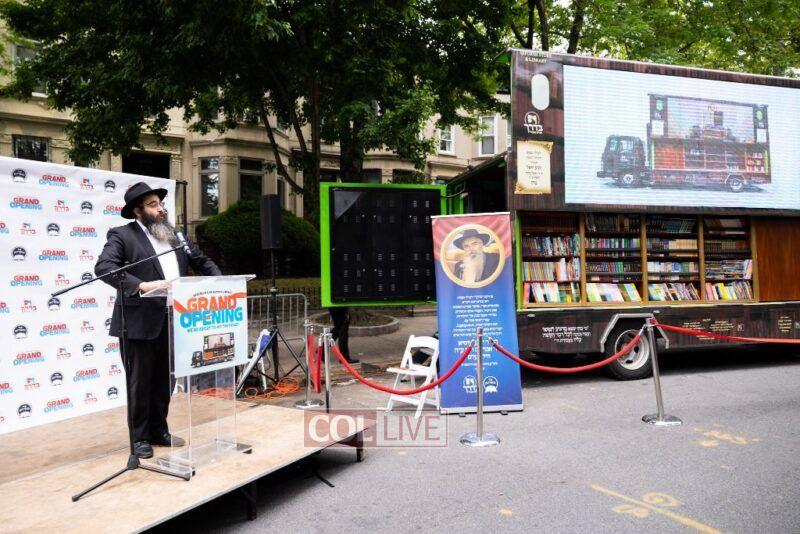 The Kids Library Truck was sponsored in memory of Rabbi Zushe Wilhelm obm. His family was in attendance for the opening event.