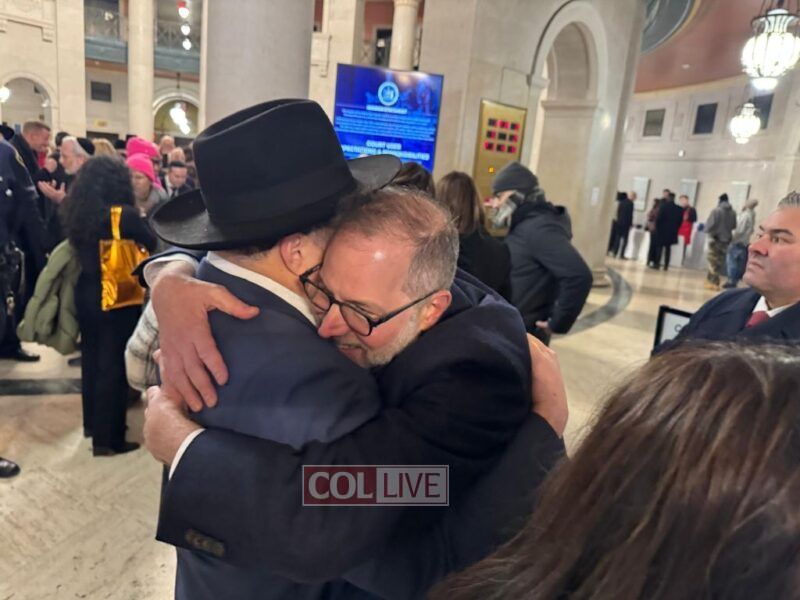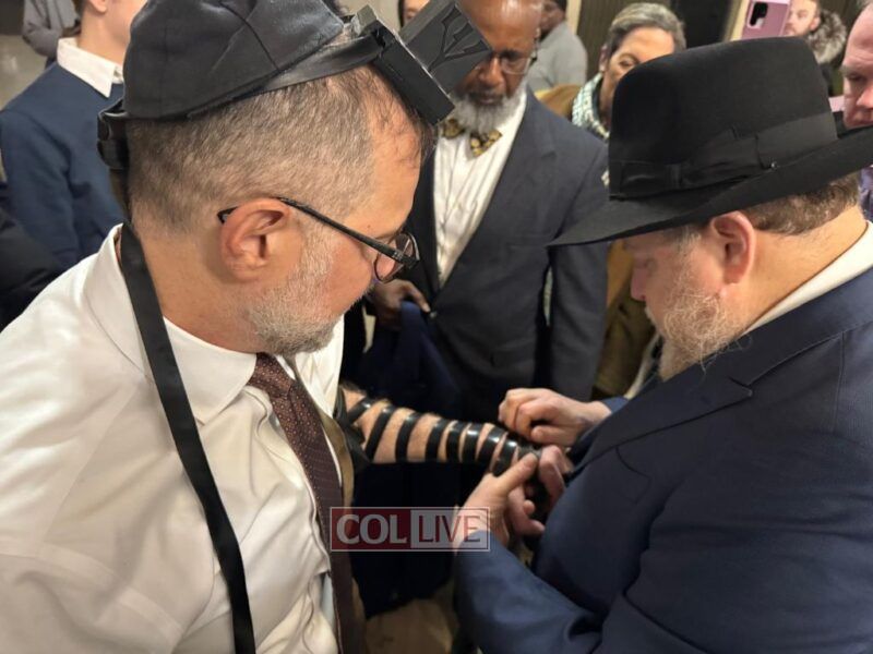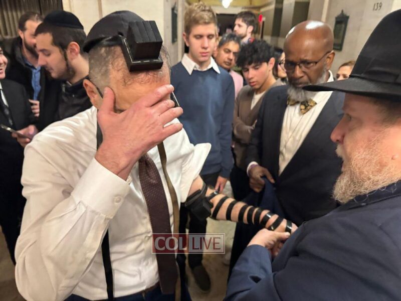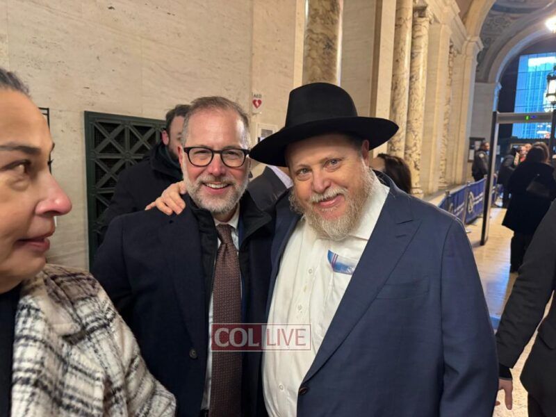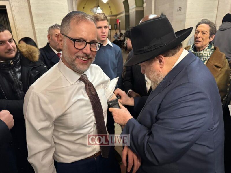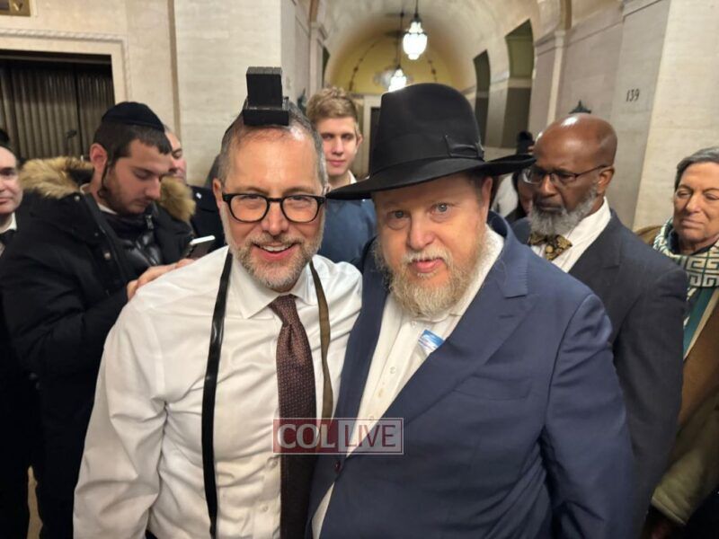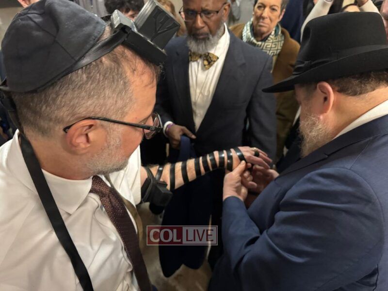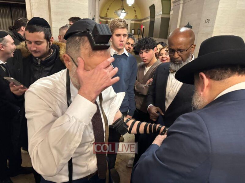 Moments after his inauguration ceremony, Comptroller Levine donned Tefillin with the help of Crown Heights activist Rabbi Chanina Sperlin, symbolizing the start of his new term with a gesture of Jewish pride and faith. The meaningful moment drew warm reactions from those in attendance.