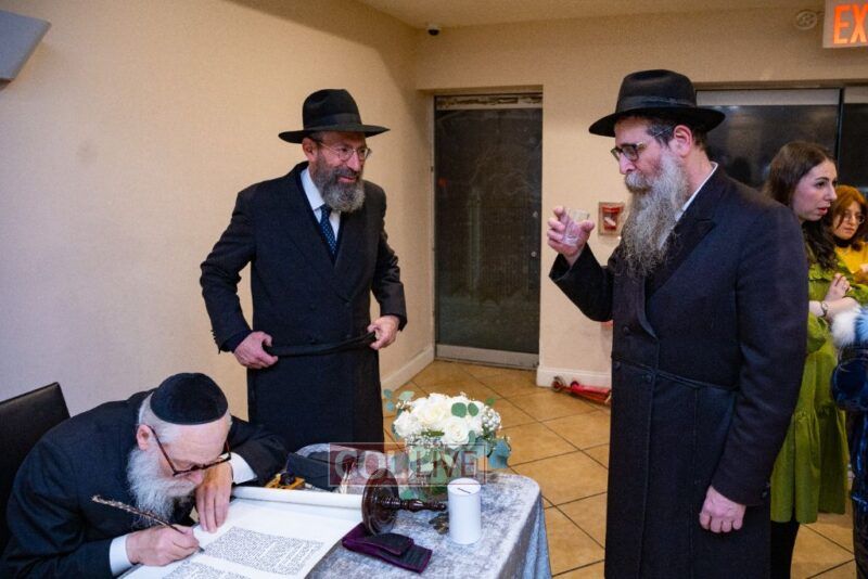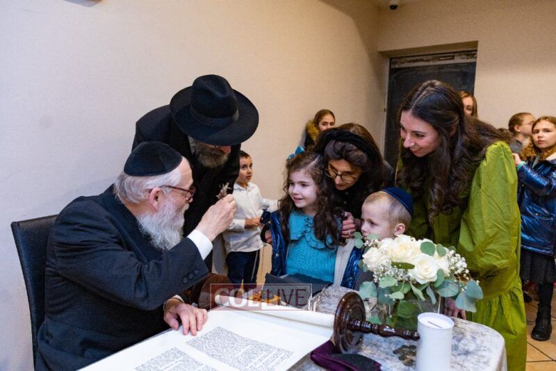 A new Sefer Torah was dedicated Thursday in Crown Heights in memory of Chaim Refael Fishman, son of Rabbi Michoel and Chani Fishman.