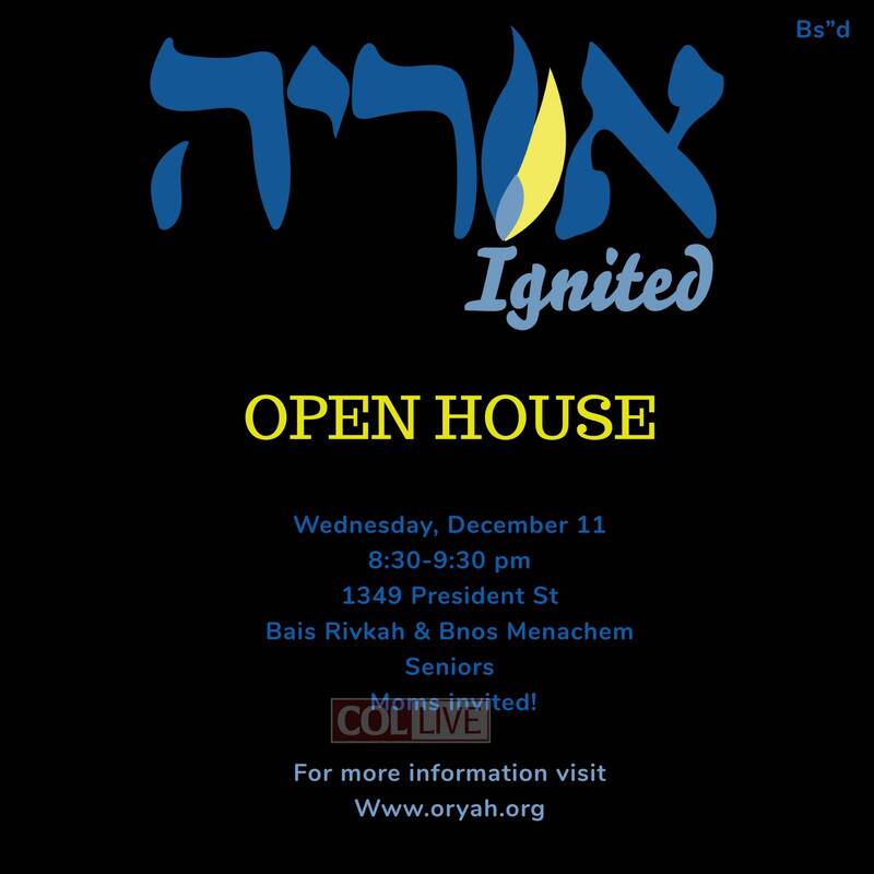 An informative open house event will take place tonight, Wednesday, in Crown Heights. Girls and moms welcome. 1349 President Street, 8:30 to 9:30 pm.