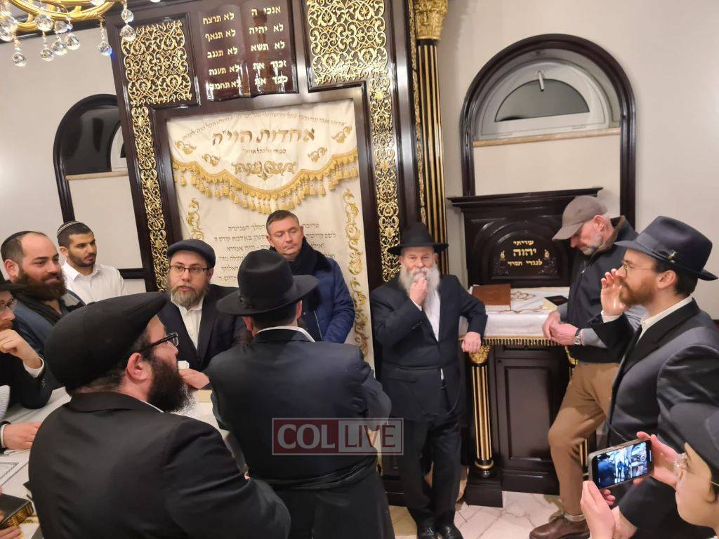 In the presence of the early visitors, a second smaller shul was inaugurated at the Ohel. Placing the Mezuzah was Dnipro Head Shliach and Chief Rabbi Shmuel Kaminetzky and Rabbi Shneur Zalman Deitsch, who oversees the activities and accommodations in Haditch.