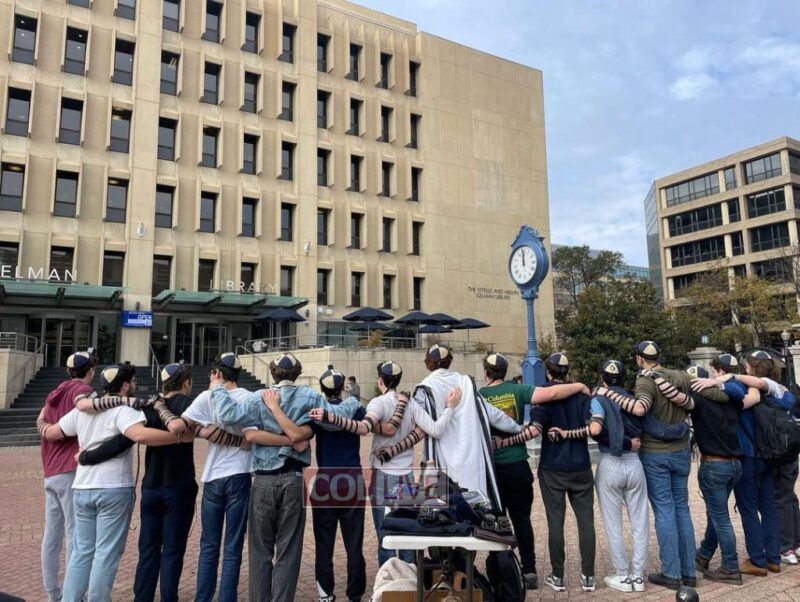 And here’s where it gets even more fun… after accepting the challenge, that college then nominates another college to put on Tefillin Together in the center of campus and keeps the pride going!