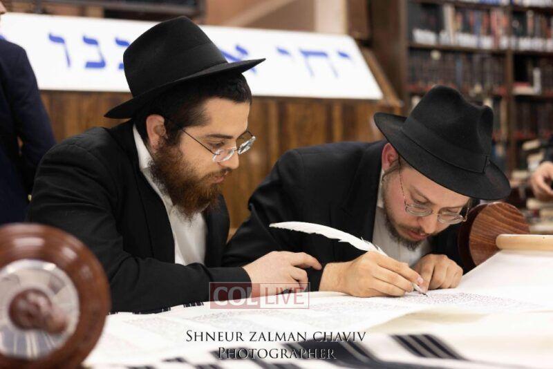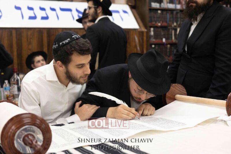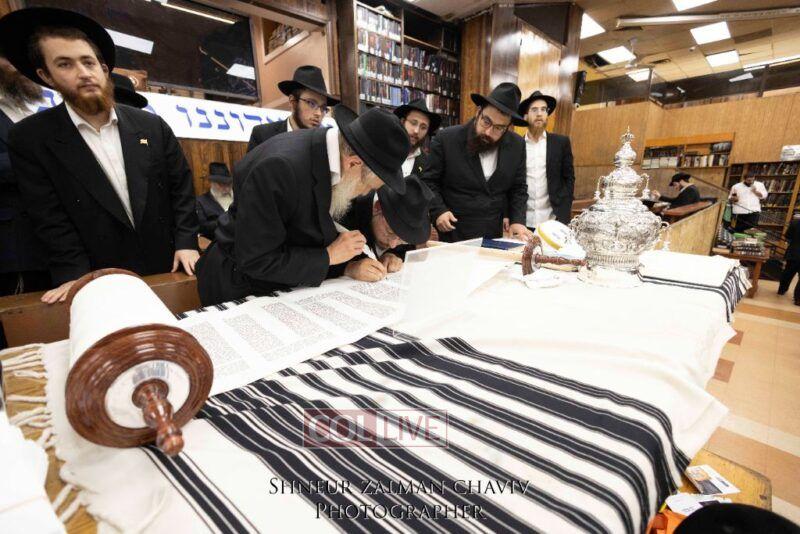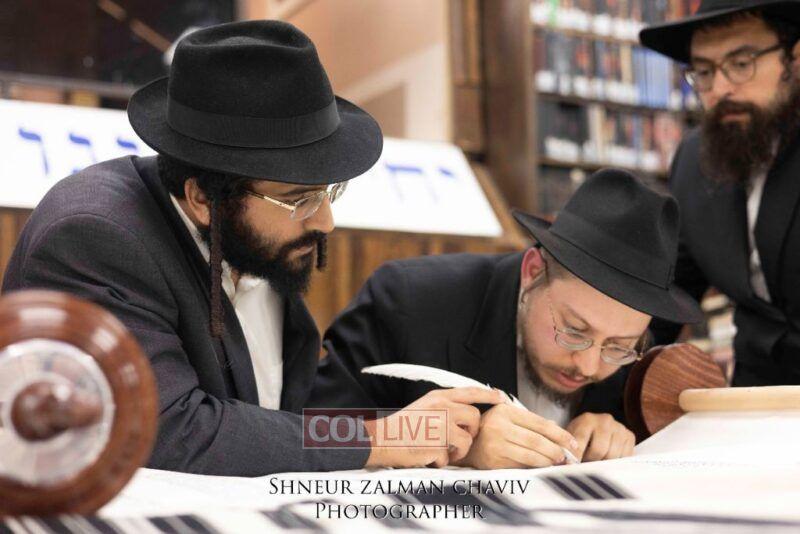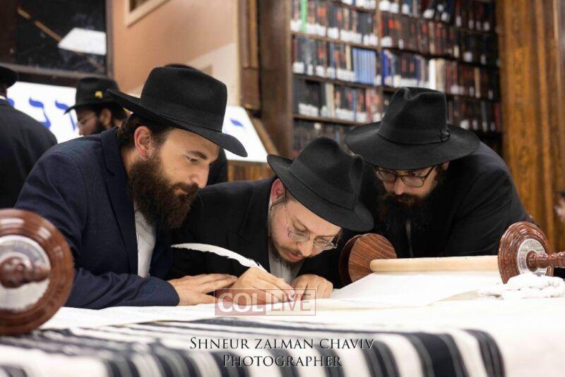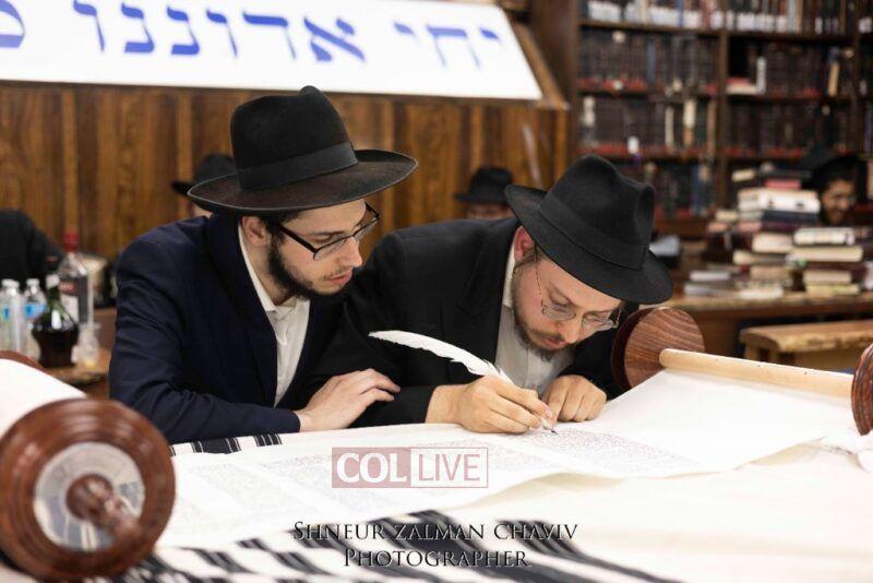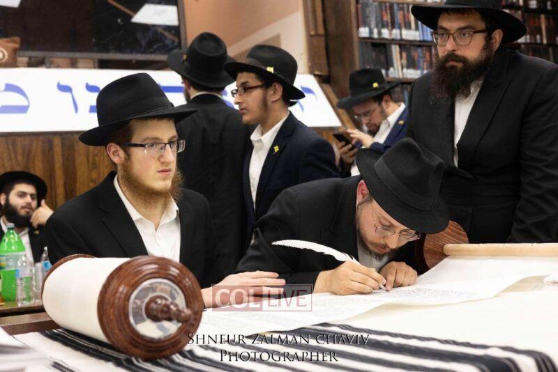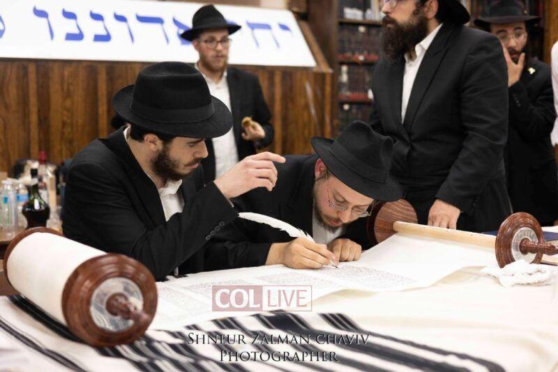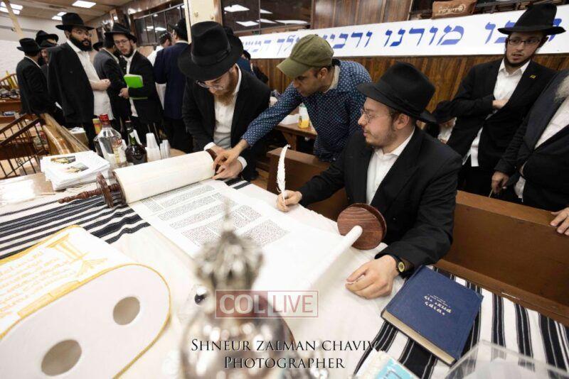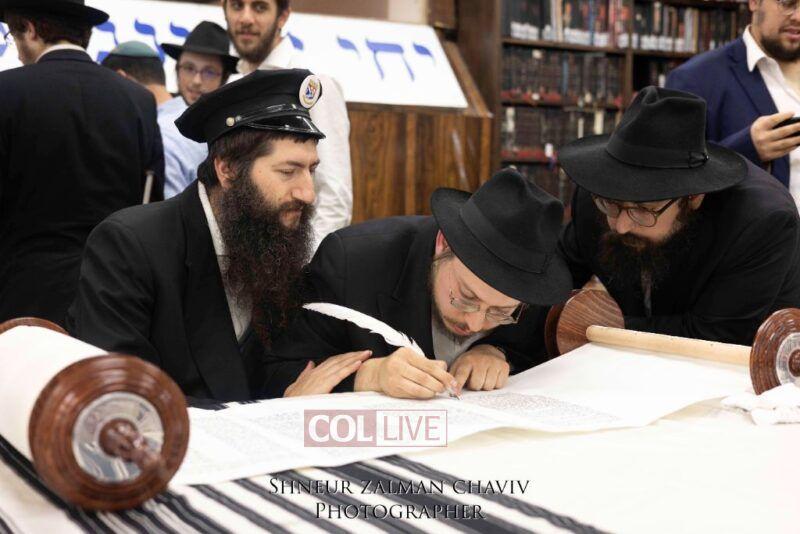A new Torah was completed in honor of the Rebbe on Chof Av at the main shul of 770 Eastern Parkway by the Reich family of Crown Heights. Photos